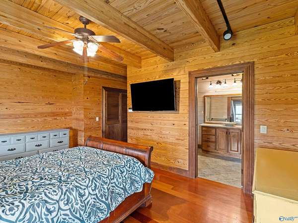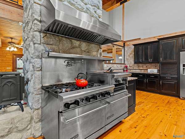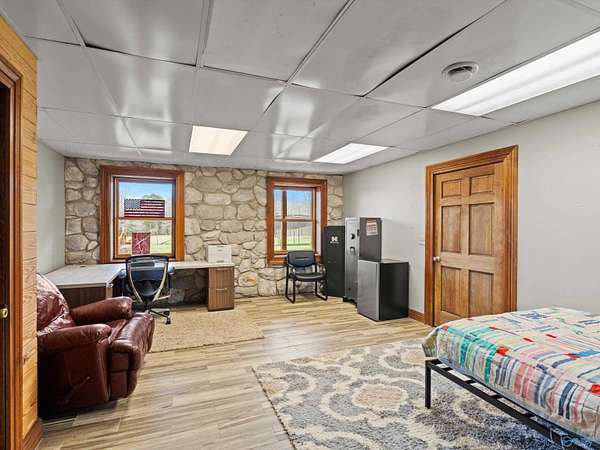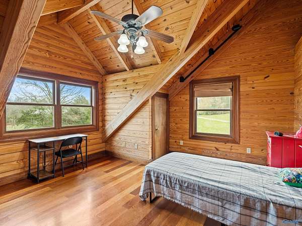 Est $3,983/moIs it a home? A Mini-farm or a Venue? It could be anything you like! Refined Rustic Resort-style home on 5 acres with 6 beds and 5 baths features high ceilings, wood interiors, hardwoods, tile, granite, miles of counterspace and endless storage, wrap around porch, Daylight Basement, storm room, tankless water heater and more. Property is mostly flat and open with approx 1 acre in woods. Great for living in or entertaining! Would be a great place for a horse, chickens or goats. You HAVE to come see this one!