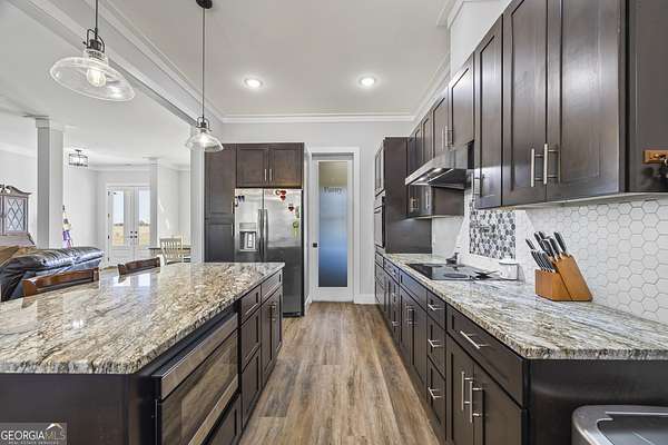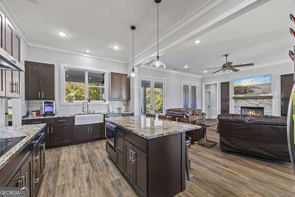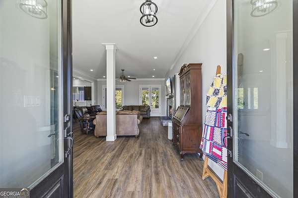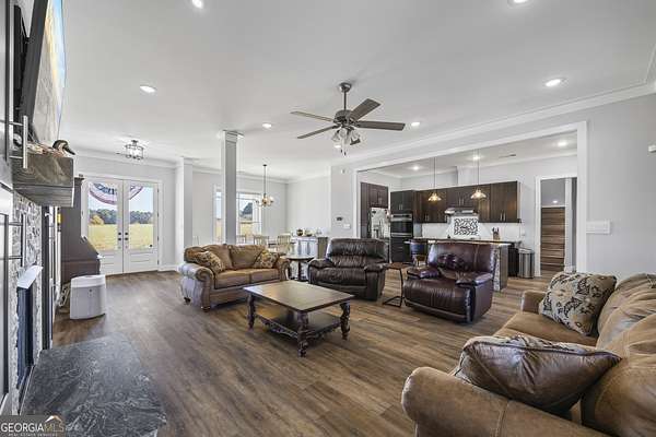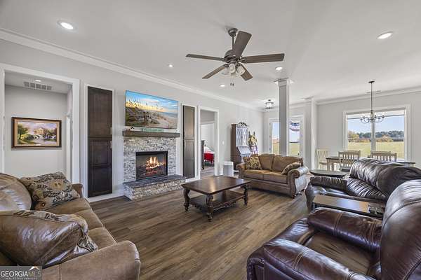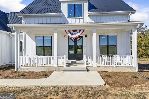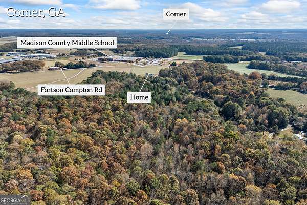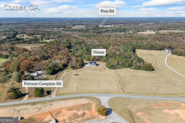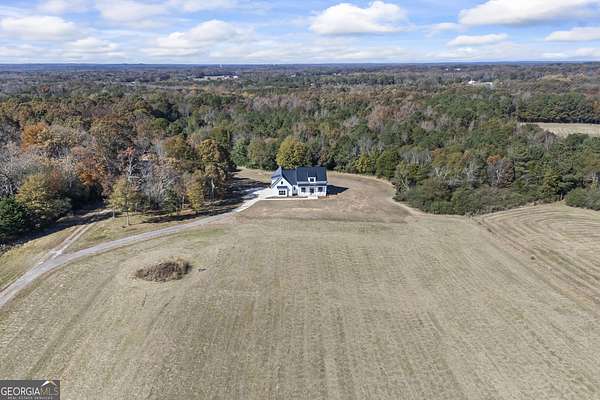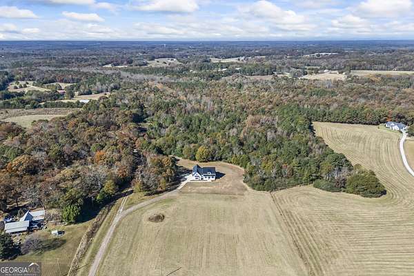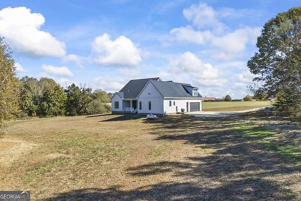 Built in 2023, this stunning 4BR/3BA modern farmhouse offers 2,537 sq ft on 15.96 peaceful acres. Open-concept design with oversized windows flooding the home with natural light. Chef's kitchen features a large island with pop-up receptacles, farmhouse sink, walk-in pantry, induction cooktop with pot filler, convection oven, microwave drawer, and water hookup for coffee maker or ice machine. Spacious living room with floor outlets/USB plugs and remote-controlled gas logs. Primary suite includes bidet seat and custom walk-in closet with built-ins. Oversized closets in every bedroom. Bonus room with USB outlets and lighted stairs. Zoned HVAC with Bosch heat pump, spray-foam attic insulation, and provisions for a mini-split in garage. Water filtration with UV sanitizing, camper and generator hookups, plus back-porch fans. Enjoy private, scenic acreage just minutes from Comer and a short drive to Athens-modern comfort meets country living!