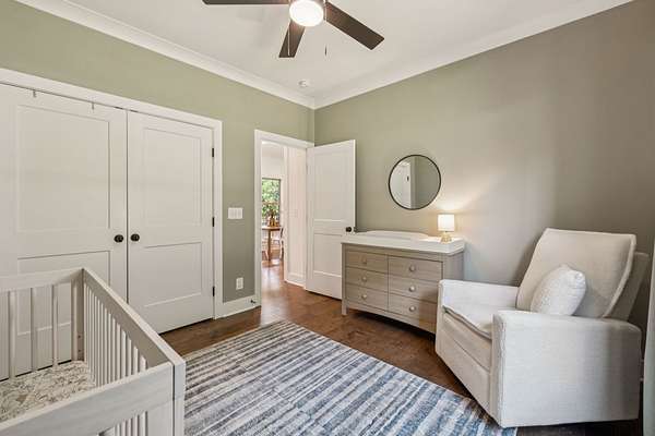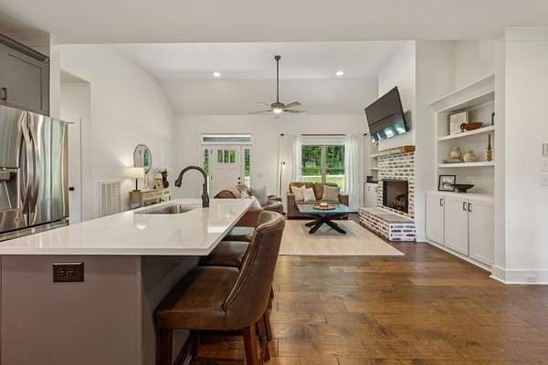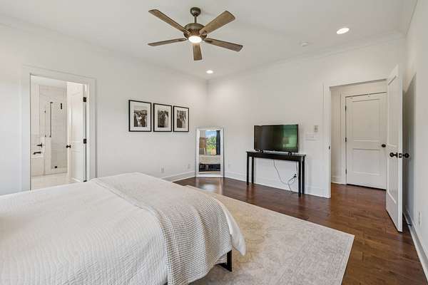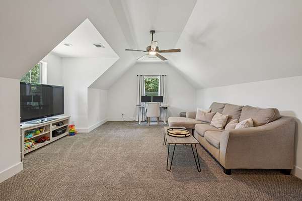 - Bookcases, Built-In Features, Ceiling Fan(s), High Ceilings, Open Floorplan, Walk-In Closet(s)