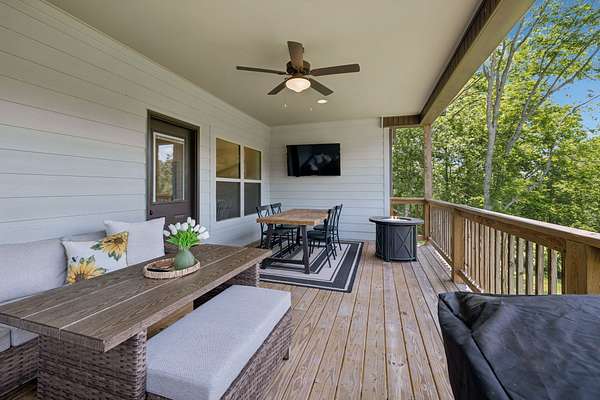 Escape to peaceful living and Gatlinburg-like views in this nearly new 3 bedroom, 2 bath modern farmhouse set on just over 6 private acres. Built in 2021, this beautifully designed home features an open-concept layout, a spacious living area filled with natural light, and a chef's kitchen complete with quartz countertops, stainless steel appliances, and a large center island. The primary suite offers a spa-inspired bathroom with dual vanities, soaking tub & walk-in shower with designer tile, and generous closet space. Upstairs offers a large bonus room and an additional flex room that is currently used as a 4th bedroom. Enjoy sunrise views from the rocking chair front porch and sunset evenings on the back deck overlooking wide open green space. Additional highlights include a large laundry/mud room, oversized two-car garage and ample room for recreational vehicles or hobby farming. If you're looking for move-in ready country charm with modern finishes and room to roam, this property is a must-see!
