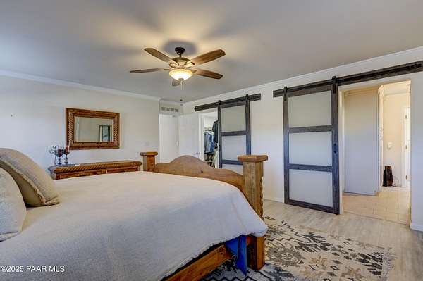 An equestrian's paradise! This meticulously maintained 4-acre, fully fenced horse property in White Horse Ranch offers exceptional amenities for both living and riding. The light-filled home features a spacious great room and a beautifully upgraded kitchen with abundant cabinetry, under-cabinet lighting, newer stainless steel appliances, and quartz countertops.The primary suite includes a dedicated office/den and a well-appointed bath with dual sinks, a large tiled shower, and generous storage. Step outside to the private side yard/dog run complete with a jacuzzi and low-maintenance artificial turf.Horse facilities are outstanding, featuring a lighted barn with mare motel, tack room with water heater, refrigerator, and utility sink, plus a wash rack and decorative sliding barn doors. Additional amenities include a 12' x 24' loafing shed, 100' x 100' arena turnout, and 55' round pen.The property also offers 16' x 16' x 36' covered RV parking, a double carport plus an additional single carport, a 12' x 14' x 20' shed for a trailer or toys, a shipping container for extra storage, a custom chicken coop, and raised garden beds.