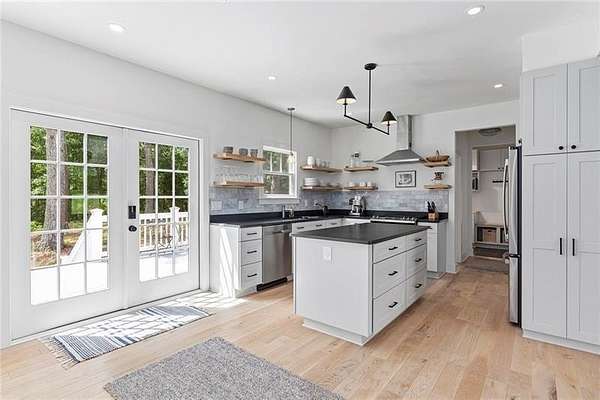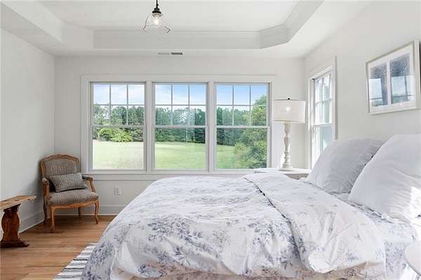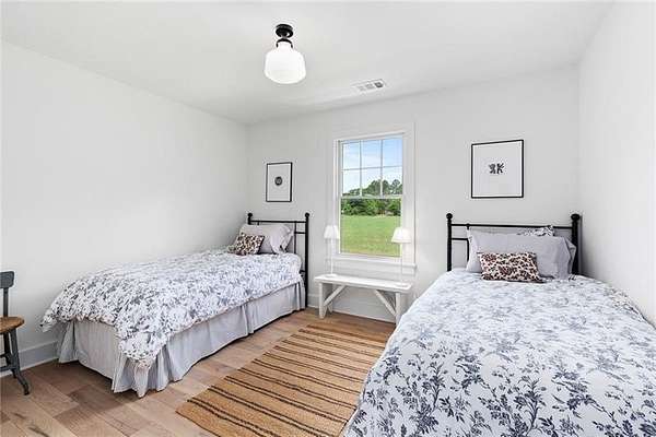 Privately nestled on over 10 serene and picturesque acres along one of Chattahoochee Hills' most coveted roads, this newly renovated white country farmhouse is a timeless expression of charm, elegance, and tranquility. Surrounded by rolling pastures and mature trees, this property offers a rare combination of privacy and convenience-just minutes from Serenbe, Cochran Mill Park, Chattahoochee Hills Riverlands Park, and only 30 minutes to Hartsfield-Jackson Atlanta International Airport, with easy access to Metro Atlanta in just 40 minutes. Thoughtfully reimagined with no detail overlooked, the light-filled two-story home welcomes you with a gracious covered front porch and dramatic entryway with a statement staircase. The open-concept layout flows seamlessly through a stylish parlor and a cozy fireside living room-designed for both everyday living and effortless entertaining. At the heart of the home, the designer kitchen impresses with a generous center island, quartz counter tops, a Carrera marble backsplash, and a suite of professional-grade integrated appliances. The adjacent dining room, bathed in natural light, offers sweeping views of the surrounding pastureland. The main level also includes a chic subway-tiled powder room, a spacious laundry room, French doors that open to an expansive deck beneath the canopy of mature trees, and convenient access to the attached two-car garage. Upstairs, the luxurious primary suite captures panoramic views and features a spa-inspired bath with dual vanities, a soaking tub, walk-in shower, and custom walk-in wardrobe. Two additional bedrooms share a thoughtfully designed full bath, while a large bonus room provides flexible space for a media room, office, guest suite, or studio. This meticulously updated home is filled with premium upgrades, including white oak flooring, Andersen energy-efficient windows, smart Nest thermostats and doorbell, a whole-house Generac generator and water filtration system, new HVAC, Hardie plank siding, new roof, and a striking slate fireplace topped with a reclaimed barnwood mantel. A spacious 1,100+/- square-foot walk-out basement with a full bath and private entrance offers exceptional potential for expanded living quarters, a guest suite, office or art studio. Beyond this beautifully finished home lies a rolling pasture, a meandering trail through your own whispering woods with a gentle stream, and a secluded backyard where open greenspace meets the shade of towering trees. This is a rare opportunity to enjoy refined country living with modern amenities-a peaceful and elegant retreat just beyond the city.