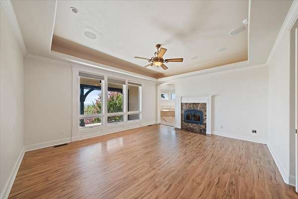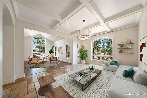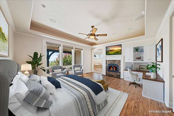 Tucked away in the prestigious Monte De Las Flores community, this 5,556 sq. ft. Northwest Homes estate blends timeless craftsmanship with modern luxury. Set on 13+ private acres, the home welcomes you with all 5 bedrooms and 5 bathrooms thoughtfully placed on the main floor for effortless living. The chef's kitchen, anchored by a Thermador 6-burner range and built-in KitchenAid refrigerator, flows seamlessly into warm, inviting spaces, from the family room's wood-burning fireplace to the serene master suite with its own wood burning fireplace. Upstairs, a spacious loft with a bath and walk-in closet offers endless possibilities. Outside, an infinity-edge pool captures breathtaking views, complemented by ground-mount solar and a detached 3-car garage. This is more than a home, it's a retreat designed for living beautifully.
