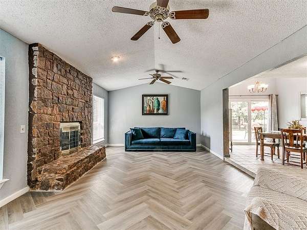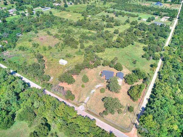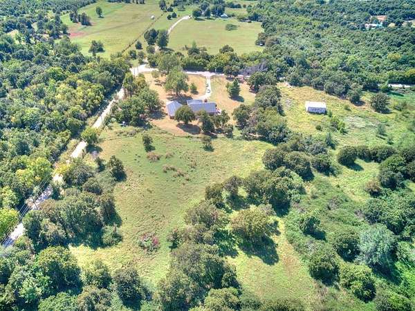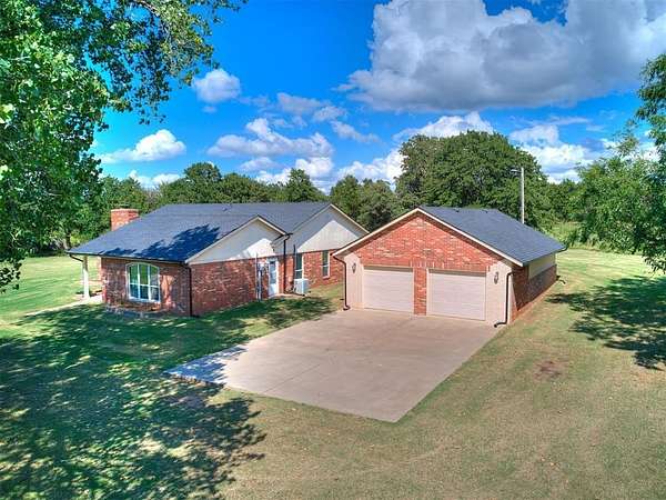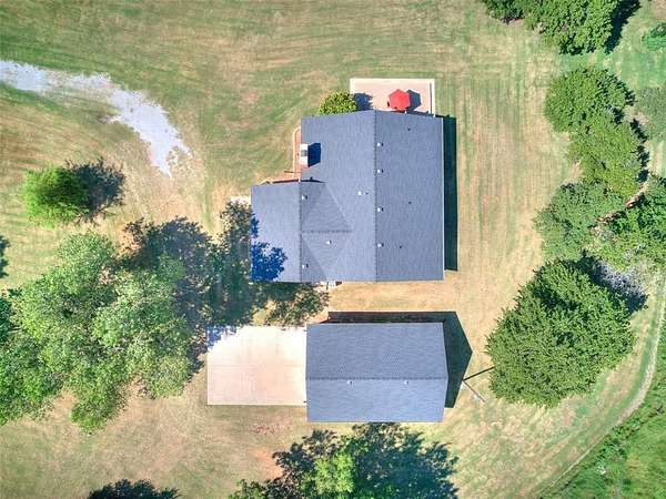 Beautiful one-level home situated on 5 acres with endless possibilities. Full construction completed in 2006--everything was redone at that time. A brand-new roof was installed in 2025 providing potential savings on insurance. This property is all-electric with no gas bill. The home is on well water+ water softener and a septic system meaning no water bill. Entry is secured with a wrought iron electric gate and remote access. Inside you'll find two spacious living areas including a cozy stone fireplace. The kitchen features granite countertops, stainless steel stove and vent hood, a stylish backsplash, sliding patio door off the dining room leading to an open patio with extended concrete, and a built-in pantry. The large utility room offers abundant storage and a sink.The primary suite includes a spacious bedroom, walk-in shower, and additional storage throughout the home.The detached garage is over 800 sq ft with two garage doors and space for 3+ cars.Outside enjoy a covered front porch perfect for watching sunsets, An open patio off the dining room, park-like yard with mature trees, and wooded acreage that provides privacy and a peaceful setting.The 5 acres of land with plenty of space to expand, build, or store your RVs, boats, and off road vehicles. Buyers also have the option to purchase additional acreage, making this property rare opportunity for those looking for more space and flexibility. Whether you're looking for a private retreat or an investment opportunity this property combines the best of country living with modern convenience. No HOA or protective covenants..