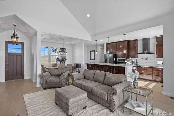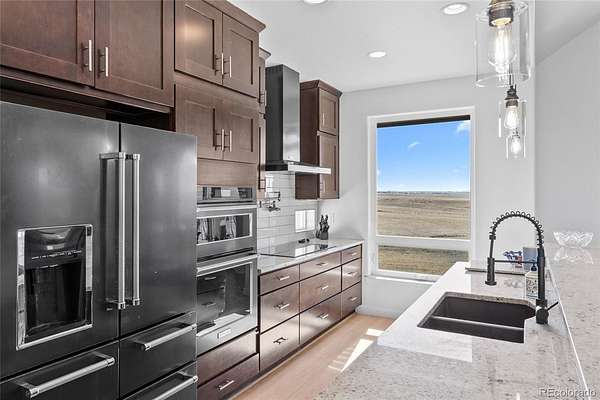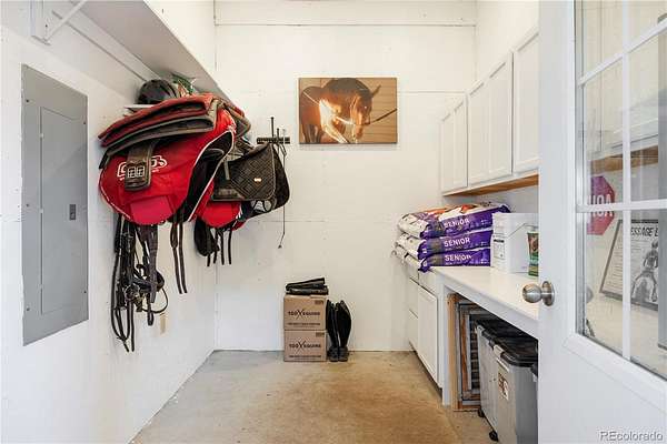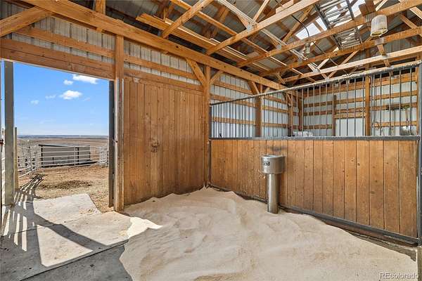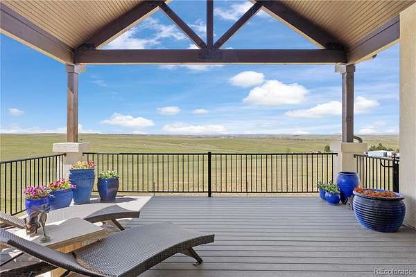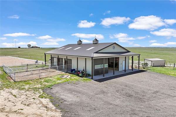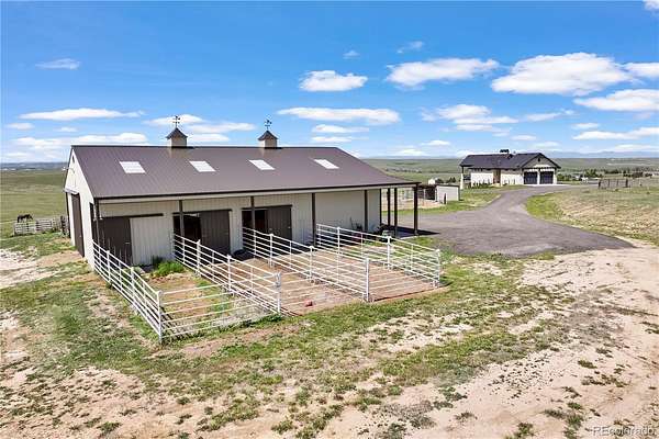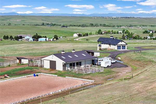 HORSE PROPERTY with Income potential! Paved roads bring you home to a circle drive that access home & horse barn.Empty nester floor living with fantastic views from every window .Newly renovated spaces create bright, open and airy feel surrounded by unobstructed views of Pikes Peak to the Flat Irons.Open concept efficient design creates an intimate place to gather at the fireplace or balcony with family and friends, overlooking horse pasture and mountain views.The walk out basement apartment has a separate kitchen, laundry ,2 beds,,jack and Jill bath and private patio, designed for split living with guests, elder parents, older children or an income producing renter.The fields are fantastic soil that drains and melts easily, allowing your horses to have turnout YEAR ROUND.The arena drains well so you can ride even after a heavy snow.The turnout shelters and overhangs allow for carefree turnout no matter the weather.The trail system gives you versatility so your riding is not limited to the arena ,you can adventure through the neighborhood bridle trails. AG water well allows you to legally keep your animals at home. High ceilings create natural light and fresh air. There are 6 stalls with 8 possible, all with overhangs and runs, Nelson heated waterers plus 3 turnout paddocks with shelters that can be opened to large fenced pasture. A perfectly appointed tack room next to hot and cold water wash rack ,large aisle and a lovely porch create a great place to relax, tack up and ride.Make your farrier happy as well with paved access to the barn. Rent the barn, or the apartment or bothThe entire operation could easily be converted to dog kennels for boarding, breeding, training or grooming business. No mud on your tires here.All of this is just 12 miles to Southlands Mall 30 minutes to the airport, close to Parker, the Colorado Horse Park with LOW ELBERT COUNTY TAXES..Desirable Elizabeth schools bus stops at your corner. NO more showings until 2026