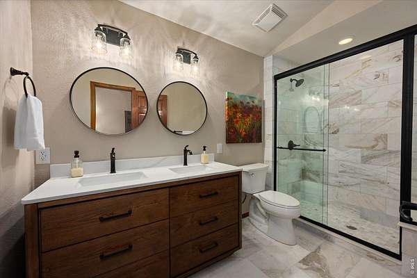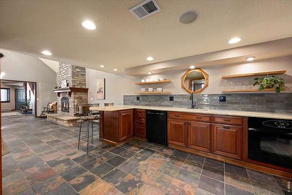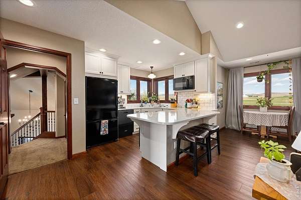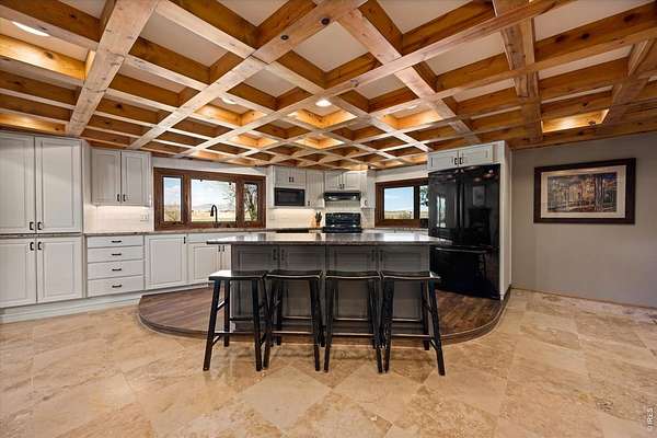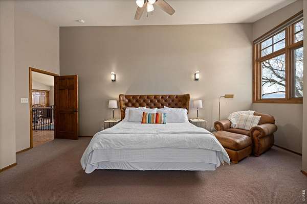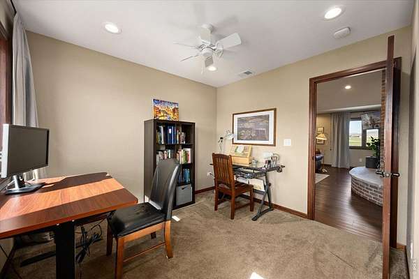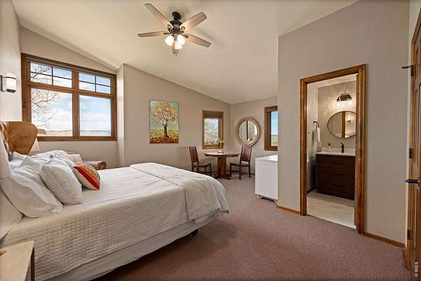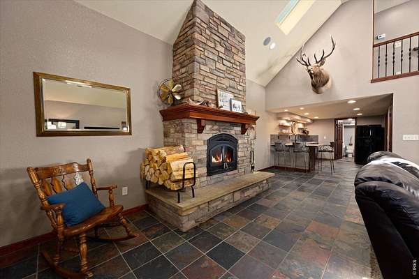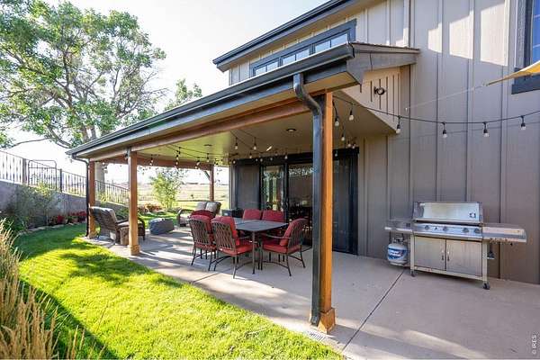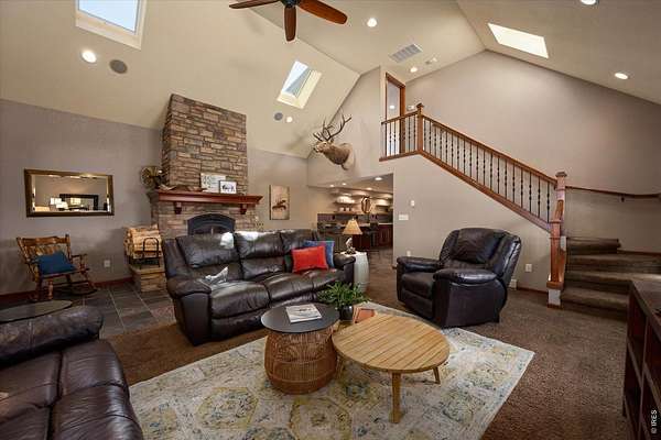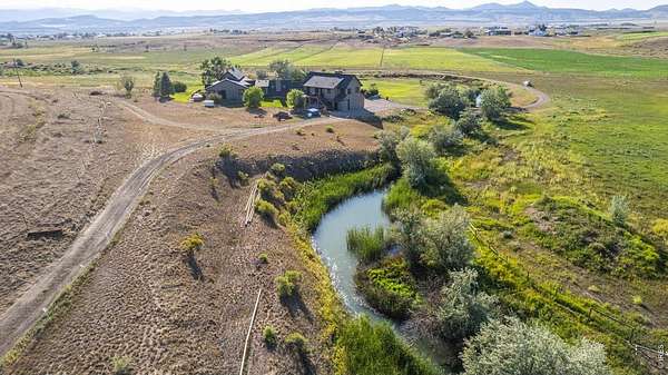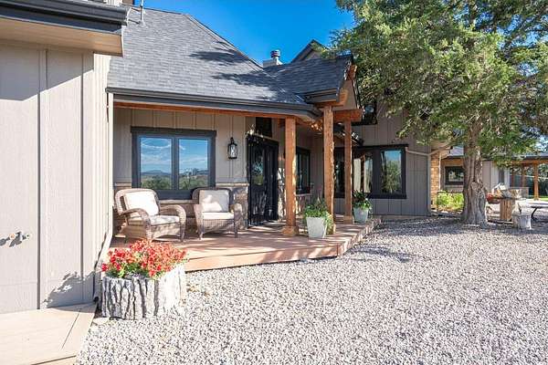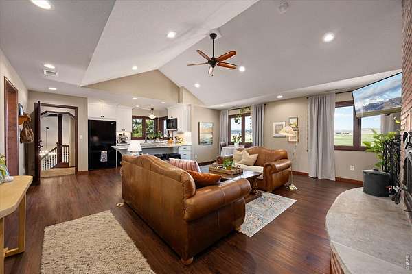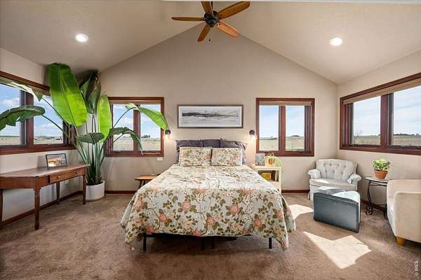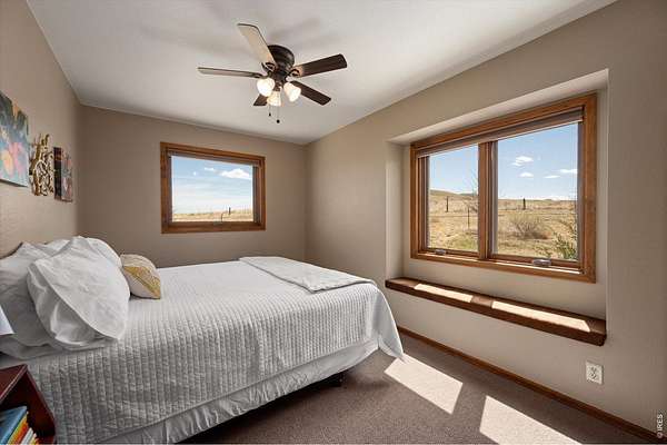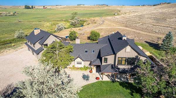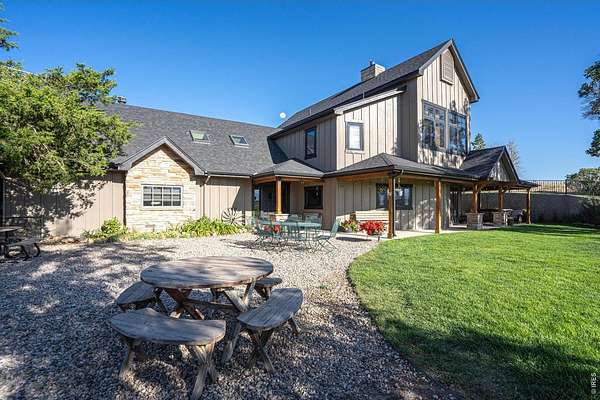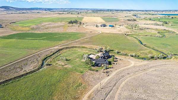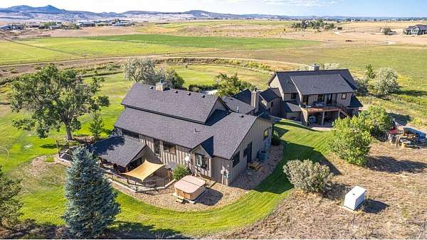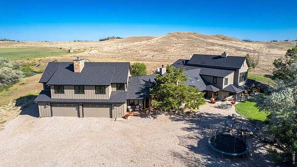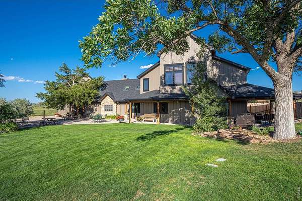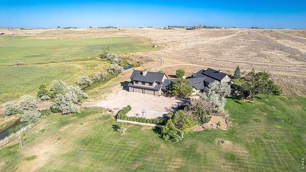 Set on 40 acres in Northern Colorado, this beautiful rural estate combines a 4,843 ft main home and an additional attached 1352 ft 2-bed + office apt that offers potential for rental income, guest quarters, or multi-generational living. With 28 irrigated acres, the property provides reliable water access through a unique combination of district water for the home, well water for landscaping/garden, and irrigation water for the acreage. A stream runs through the property as well! Inside, both homes are well-designed for everyday living and entertaining. With 7 bedrooms, 2 offices, additional flex spaces, and 5 bathrooms, the layouts offer incredible flexibility to meet your needs. In the main home, you will find an office, separate media room with wet bar, a secondary kitchen enhancing functionality for hosting, and a family room with a wood-burning stove. Additionally, a huge vaulted great room anchors the home, featuring a 2-sided gas fireplace connecting the spacious kitchen with large island perfect for hosting. Washer and dryer hookups on both levels add everyday convenience, and a private sauna creates a relaxing retreat. Large windows capture unobstructed Front Range views, filling the home with natural light and Colorado's signature backdrop. A whole-house propane-powered generator, two tankless water heaters, and two duel system heat pumps/furnaces also make this home efficient and reliable. Outside, multiple patios, basketball court, and outdoor living areas provide space to relax, play and entertain. The property also includes a massive 1,500+ ft garage for vehicles, equipment, or workshop needs. The acreage is set up for cattle, has a chicken house with electricity, a tilled/irrigated garden area, as well as potential for building a barn for equestrian-lovers. With open skies, Front Range views, flowing water, irrigated acreage, flexible living spaces and close access to Fort Collins, opportunities abound to create the living experience of your dreams.