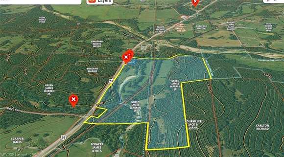 Prime 120-Acre Bottom Land with Peavine Creek located on HWY 59 just south of Barren Fork Creek. Property Overview: Size: 120 acres. Features: Over half a mile of Peavine Creek running through the middle Activities: Great for fishing, swimming, cattle ranching, hunting (ideal for monster buck hunting), and building your dream home. Utilities: Water, electric, and gas available. Access: Highway frontage. Location: 20 minutes to Siloam Springs. Highlights: Waterfront: Enjoy the serene and picturesque Peavine Creek, perfect for leisure and recreation. Versatile Use: Ideal for agricultural pursuits, outdoor adventures, and residential development. Convenient Location: Easy access to amenities and major routes, making it a prime location for a peaceful yet accessible lifestyle.
