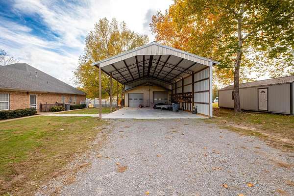 Discover the ease of single-level living on 1.58 private acres. This inviting 3-bed, 2.5-bath home welcomes you with a generously sized living room and a spacious primary suite complete with oversized walk-in closets. The Laundry Room is also a storm shelter. Step out onto the beautiful covered back porch—your new favorite spot for morning coffee or evening gatherings. For hobbyists, entrepreneurs, or anyone needing extra space, the expansive shop offers endless possibilities. A rare blend of comfort, acreage, and functionality all in one property. Adjoining .92 acre could be sold as well. SEE AGENT REMARKS