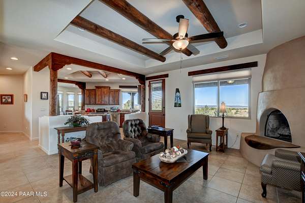 - Beamed Ceilings, Ceiling Fan(s), Counters-Solid SRFC, Eat-In Kitchen, Formal Dining, High Ceilings, Kitchen Island, Walk-In Closet(s)