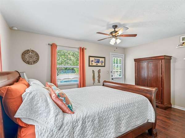 3,141 sq. Ft. Custom built brick pool home on 3 acres located just down the street from the World Equestrian Center Ocala! The property boasts an updated main house with 5 bedrooms, detached guest casita with 1 bedroom & full bathroom, detached 4-car garage & screened-in pool. The private gated entrance leads to the main house & garage with plenty of parking & a large concrete pad for an RV, horse trailer or boat. There is no HOA & the 3 acres is fully fenced & ready for a horse barn to be built. The house has 2 primary suites both with ensuite full baths, 3 additional bedrooms, living room, dining room, & cozy family room with fireplace leading to the huge screened- in lanai. The kitchen has been updated with granite counter tops & stainless appliances plus the internal laundry room is over-sized with sink & shower. Throughout the house & casita you will find all wood laminate & tile flooring. The detached guest casita has a separate entrance with living room, bedroom & full bathroom. There is also a generator including in-ground propane tank. Well located within a quiet equestrian community, this property is move-in ready!