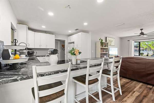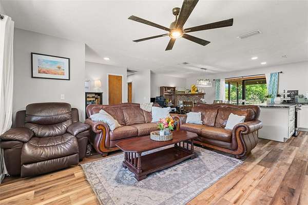 This versatile residence features a well-appointed 3-bedroom, 3 full bathroom main home with a 2-car garage, thoughtfully designed for comfort and functionality. Inside, you’ll find a beautifully remodeled gourmet kitchen (2022) showcasing solid wood, soft-close white Shaker cabinetry, creating a bright and timeless space perfect for gathering. The welcoming, open living room features a large bay window with views of the front yard adding to the overall farmhouse charm. Major updates provide peace of mind, including a new roof (2025) and a newer AC system with replaced ductwork (2022). The home has newer luxury vinyl plank flooring throughout.
