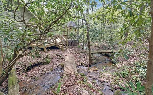Great investment property which borders national forest and walking distance to Walden Creek Waterfall. If you are looking to get away from it all this is the place. Creek runs next to cottage with a deck, screened porch, and swing to relax while listening to the sounds of the water and nature. Property sold with two lots, one to build a home and keep the cottage next door for guests. Perfect for rental or VRBO possibility. Home has tons of character. from the old stone fireplace to the wood beams from loc sawmill. Primary bedroom on main with two bedrooms upstairs. Second tract 2-is a 1.0-acre lot also has creek that runs next to lot. Minutes from wineries and trails and adjoins National Forest and close by Appalachian Trail. Home being sold as is and could be a one-of-a-kind showplace. Minutes to Dahlonega and Cleveland. A new survey has just been completed so property lines are well marked. House is located on Tract 1, 1.84 acres with an additional 1.0-acre lot included with creek. New HVAC unit has been installed. Appointment only as owner works from home. Do not access property without appointment.