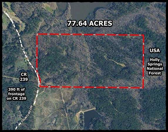 Recently cleared 77 acres - deer and turkey joining the Holly Springs National Forest. This is the largest of four tracts in the area being offered. The property is a third of a mile north of CR 154, and it has about 390 feet of paved frontage on CR 239. A couple of small creeks cut through, and there's also a tiny pond to help add appeal for the wildlife and a bonus for anyone with plans for future livestock.Electricity, community water, and fiber optic internet are all available in the area. ***Location * less than 3 miles from I-55 * 15 miles from Enid Lake's Persimmon Hill Campground? ?* 16 miles from Grenada * 19 miles from Grenada Lake's North Abutment Campground * 23 miles from Water Valley * 25 miles from Batesville * 40 miles from Oxford