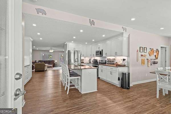 Looking for a private, newly renovated retreat with a pond, acreage, and room for everything you love? This one checks every box. Nestled on 10 beautiful acres, this property offers the perfect blend of peaceful country living and functional space. The newly renovated 4-bedroom, 2-bath home features an open floor plan designed for easy living and entertaining. The spacious master suite is a true highlight, with French doors overlooking the pond and an incredible ensuite that conveniently connects directly to the laundry room. Downstairs, you'll find an unfinished basement complete with a finished full bath-ready to be transformed into additional living space, a recreation area, or the ultimate workshop. Situated on the back corner of the property, the home offers added privacy and backs up to Henry County Reservoir land, giving you a serene, natural backdrop. Outside, the possibilities are endless. The large shop includes a lean-to for additional storage and its own bathroom-perfect for hobbies, equipment, or a home-based business. Bring your animals, because the barn is ready with stalls and upstairs hay storage, along with two chicken coops already in place. The property is fully fenced and gated with an automatic opener for both convenience and security. An old home shell on the property offers incredible character-ideal for an office, photographer's studio, or man cave. With 10 acres of usable land, there's enough road frontage to cut out 3 acres to build another home or create a multi-generational setup. If you've been dreaming of space, privacy, and a property that truly has it all-this is one you don't want to miss.