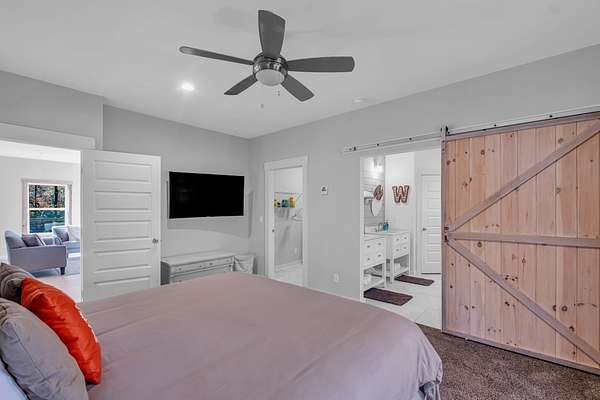 The home boasts over 1,300 sq ft of covered deck space, ideal for entertaining or unwinding with river views. Inside, you'll find granite countertops, FIBER internet, a Rheem tankless water heater, and internet-enabled climate control with 4 zones for ultimate comfort. There's also a home generator hookup, Smart AI motion detection camera, and an encapsulated crawl space for efficiency and peace of mind. ( The crawl space can be used as an Storm Shelter)