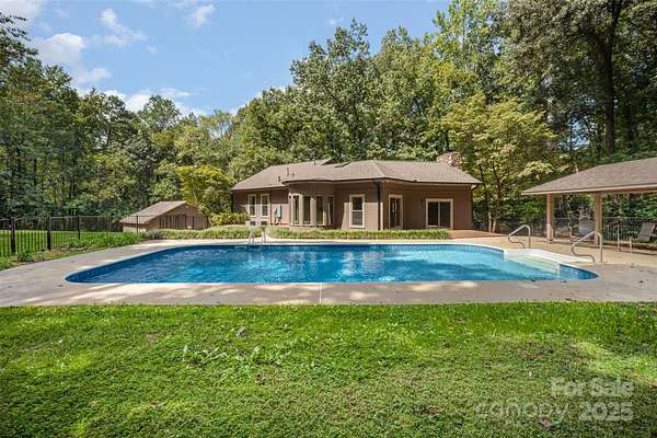 Don't miss this beautifully maintained 4-bedroom, 3-bath home on 1.57 private, wooded acres in desirable Mooresville, NC! Offering space, comfort, and outdoor living, this property is ideal for those who crave privacy and room to roam. The main level features a spacious great room with access to a large deck overlooking a stunning 20x40 in-ground pool (3-10 ft deep), perfect for entertaining or relaxing. A poolside cabana with sink and cabinet sits beside a pump house with a convenient half bath. The home also boasts a detached 3-car garage with workshop space that also includes a 220 volt circuit for your bigger projects and equipment and attic storage. Inside, you'll find 3 bedrooms and 2 full baths on the main level, plus a finished basement with a large rec/flex space, 1 additional bedroom, and a full bath, along with another room that can be used as a bedroom, office or flex space. A rare find with space, function, and resort-style amenities all just minutes from Mooresville conveniences!