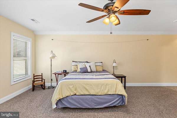 - Air Filter System, Attic, Carpet, Ceiling Fan(s), Central Vacuum, Chair Railings, Combination Kitchen/Living, Crown Moldings, Dining Area, Eat-In Kitchen, Entry Level Bedroom, Flat, Formal/Separate Dining Room, Gourmet Kitchen, Island Kitchen, Laundry Chute, Open Floor Plan, Primary Bath(s), Recessed Lighting, Upgraded Countertops, Walk-In Closet(s), Window Treatments, Wood Floors