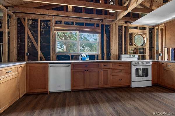 Opportunity awaits on five beautiful acres of cleared, flat land with a home nestled beneath mature Spanish oaks. This property offers a peaceful setting with a natural canopy of stunning oak trees that provide shade, character, and a true Old Florida feel. With plenty of open space and scenic surroundings, the acreage offers an ideal setting for those seeking privacy and room to enjoy the outdoors, spread out, or create a custom homestead, while still being a manageable size for those searching for land with a home in a quiet setting. The existing home is currently mid renovation and will require a buyer with vision to complete the project. Interior walls have been removed and electrical components have been taken out, creating a blank slate for redesign and customization. Several improvements have already been started, including flooring, updated plumbing, new bathroom fixtures, and new kitchen cabinets. In addition to the home, the property features a 14 x 30 aluminum shed that offers excellent storage for equipment, tools, or recreational vehicles. This property is best suited for investors, contractors, or buyers looking for acreage and the opportunity to complete a renovation while enjoying the beauty and space of five scenic acres.