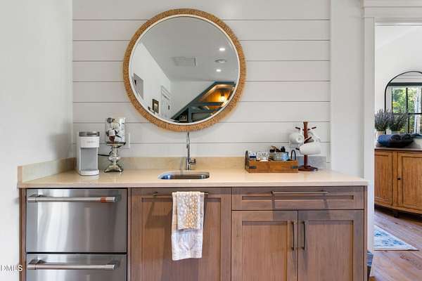 - Bar, Bathtub/Shower Combination, Beamed Ceilings, Breakfast Bar, Built-In Features, Ceiling Fan(s), Chandelier, Crown Molding, Double Vanity, Dual Closets, Eat-In Kitchen, Entrance Foyer, High Ceilings, Kitchen Island, Kitchen/Dining Room Combination, Natural Woodwork, Nursery, Open Floorplan, Pantry, Primary Downstairs, Sauna, Smart Home, Smart Thermostat, Smooth Ceilings, Sound System, Vaulted Ceiling(s), Walk-In Closet(s), Walk-In Shower, Water Closet, Wet Bar, Wired For Data, Wired For Sound