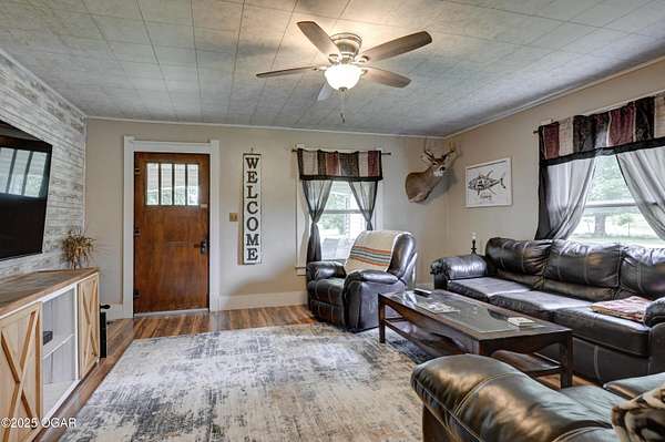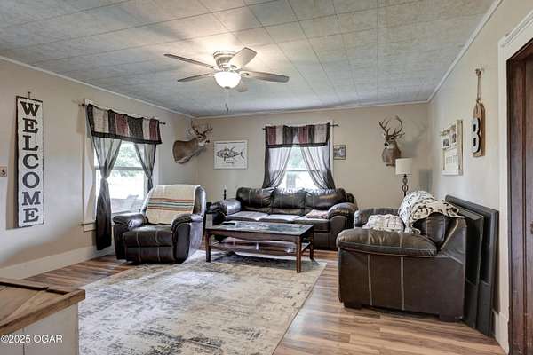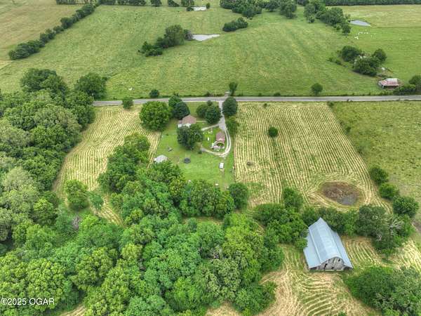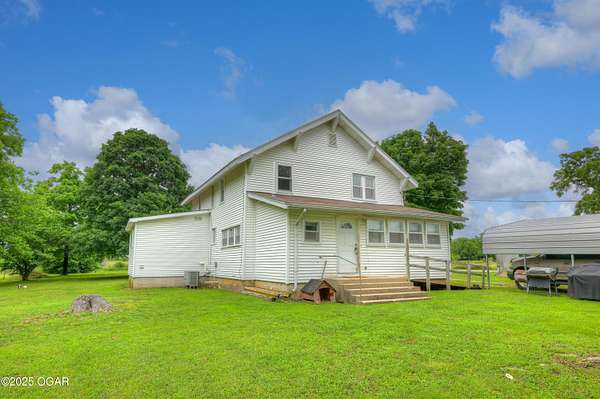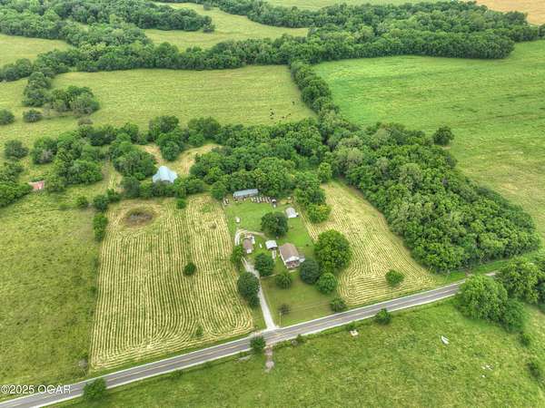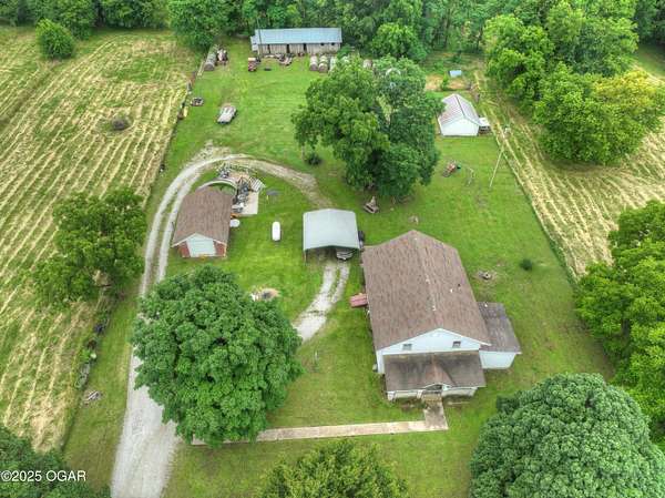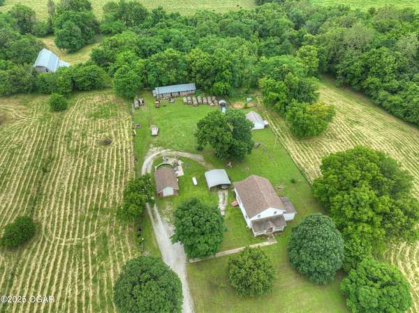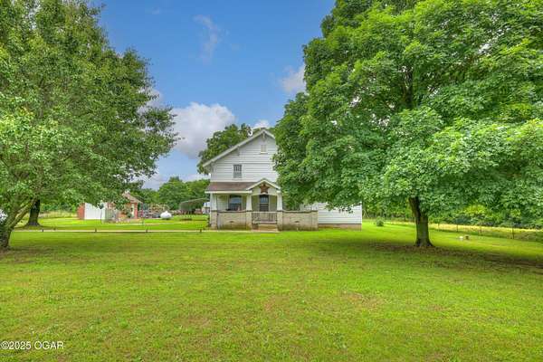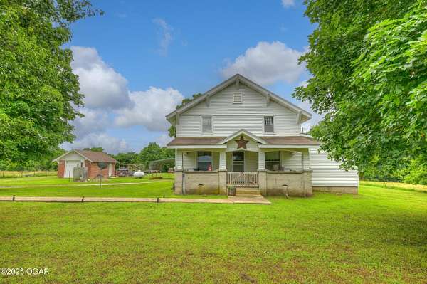 Spacious 5-bedroom, 3-bath farmhouse on 10.04 beautiful acres in Sarcoxie! This 2-story home offers over 2400 sq ft of living space, including a large upstairs bonus room that could easily function as a 5th bedroom, playroom, or office. The main level features two living areas, a spacious kitchen and dining area, the primary suite with attached bathroom/laundry, and an additional full bathroom. Upstairs includes three bedrooms, two full bathrooms, and the oversized bonus room/5th bedroom. The 10-acre parcel offers a mix of open pasture and mature timber, ideal for hobby farming, livestock, or recreation. Multiple outbuildings include a 16x24 brick garage/shop, carport, chicken coop, barn with hay loft, storage sheds, and fenced animal areas. Plenty of space for gardening, animals, and outdoor living. Located just 4 miles from Sarcoxie schools and amenities, and a short drive to Joplin, this property combines peaceful country living with everyday convenience. Bring your animals and enjoy the freedom of rural life with all the essentials already in place!