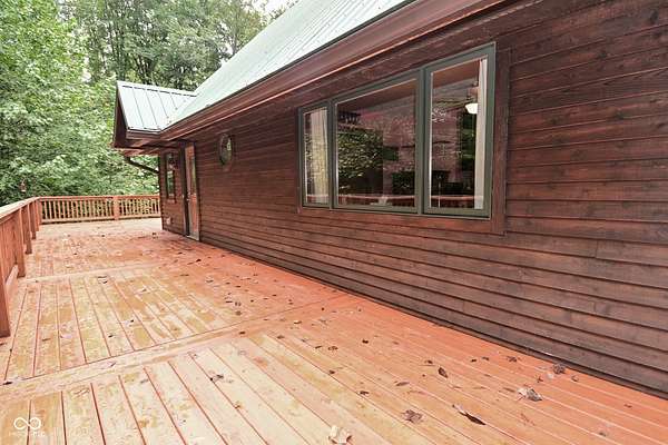 Beautiful home on over 5 wooded acres within the conservancy district of Lake Lemon, sublease eligible for a dock space on the water through the LLCD. The large wrap around deck was just redone, and provides the perfect spot to sit and watch the deer. Gather around the campfire in the evenings at your private firepit area. If you prefer water activities, you will love the all sports lake where you can enjoy boating, sailing, rowing, and fishing. The views can also be enjoyed from inside with the floor to ceiling windows in the living room and kitchen. Three bedrooms and two full bathrooms in this updated home. Plus the unfinished walkout basement is plumbed for a third full bathroom and has egress window for 4th bedroom option if needed. Recent updates include a new gas water heater, whole house dehumidifier, LED air purifier, and the control panel & burners were replaced in the gas furnace. Additionally, the home has a metal roof, hardwood floors, and pex plumbing lines.