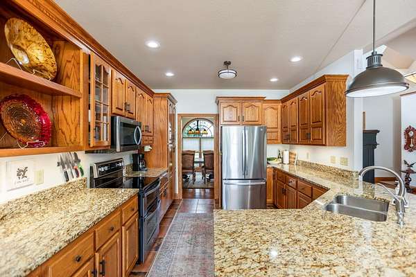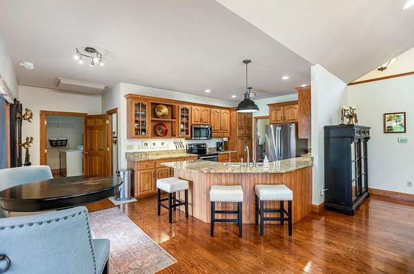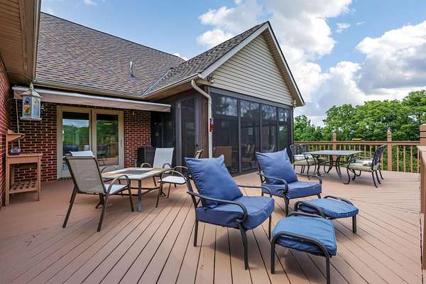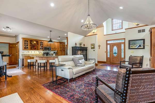 Welcome to your private sanctuary an extraordinary Gated Executive Estate nestled on 19 pristine acres, featuring a stunning all-brick ranch, serene access to pond, and mature wooded backdrop for total seclusion. Step into the expansive open-concept main level, where you'll find Pella windows flooding the space with natural light, highlighting the gas fireplace in the cozy yet elegant living room. Enjoy all four seasons in the spacious sunroom, ideal for entertaining or tranquil mornings overlooking your private acreage. The heart of the home extends into the gourmet kitchen and flows seamlessly into the primary suite, which boasts a custom walk-in closet and spa-inspired en-suite bath. With 3 spacious bedrooms and 2 full bathrooms upstairs, there's room for family and guests. The fully finished lower level is a retreat of its own-featuring updated living quarters, a woodburning fireplace, and endless possibilities for multigenerational living, home office, gym, or media lounge. This estate is energy-efficient and future-ready with a upgraded geothermal HVAC system, new hot water tank, and premium finishes throughout. Key Features: 19 acres of gated privacy Access to pond Four-seasons sunroom Full brick exterior 2 fireplaces (gas & woodburning) Updated finished basement with second living area Pella windows throughout Custom walk-in closet in primary suite Geothermal system & new water heater 3 full baths | 3 bedrooms upstairs Insulated and heated pole barn with concrete floors Surrounded by nature and tranquility This is more than a home it's a lifestyle. Whether you're seeking a private retreat, a family legacy estate, or a place to entertain on a grand scale, this rare offering is a must see.