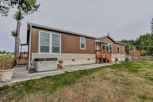 Pride of ownership! This manufactured is a high end Palm Harbor home with all the bells & whistles. Very generous sized kitchen/dining room combo, pantry with built-ins/desk, utility room with exterior door, beautiful primary bedroom with an impressive bathroom. Living room has a quality woodstove with a push ignitor & fan for cozy economical wood heat. Home features 9' ceilings with 6.5' tall windows that let the sunshine in. Property has 23.51 rolling acres that are fenced/cross fenced with excellent hay to harvest or feed your preferred stock. Groomed stand of cedar & fir that surround the year round spring fed pond. Acreage has access road to the bluff and on top theres a hunting blind, man made watering pond for the wildlife & spectacular views of the valley. Appx 5 acres are across the street that has an actual rock quarry and beaver creek frontage.Several outbuildings include a 48 x36 shop with 12' doors,2nd level added for bonus space, walled off main floor for tool room/storage.Finished Tuff shed with a large loft & another spacious building for garden supplies etc. Carport for vehicles. Driveway is paved and offers abundant parking. Multiple fruit & nut trees that produce! Apple, Peach, Pear & Almond. Fenced garden area & poultry coop. All this with peaceful view of sunsets & forests. And for the pickle ball enthusiasts there is a paved court with net !Easy 6 miles to Longview & 1 hour to PDX