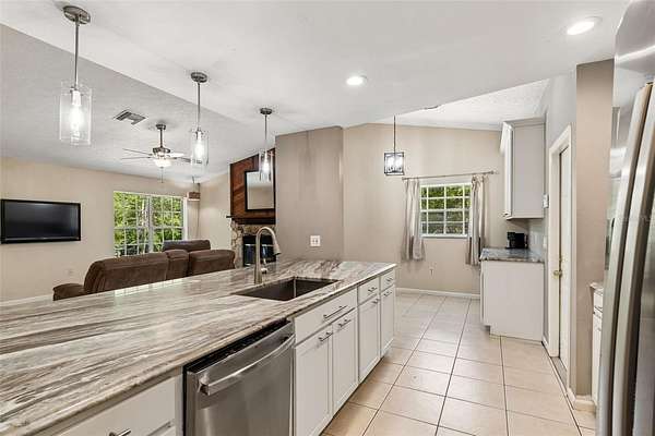 French doors lead to a screened back porch overlooking the barn and fenced pasture, creating the perfect space to relax and enjoy the property. With room for animals, outdoor hobbies, RV or boat access, and future expansion, this Tanglewood East acreage property offers a rare opportunity for buyers seeking space, privacy, and versatility. (ROOF-2026)(A/C-2024)(W/H-2026)