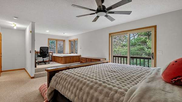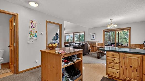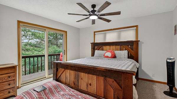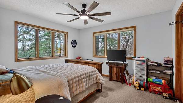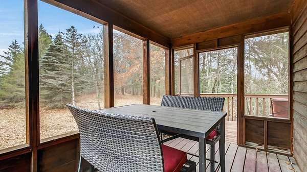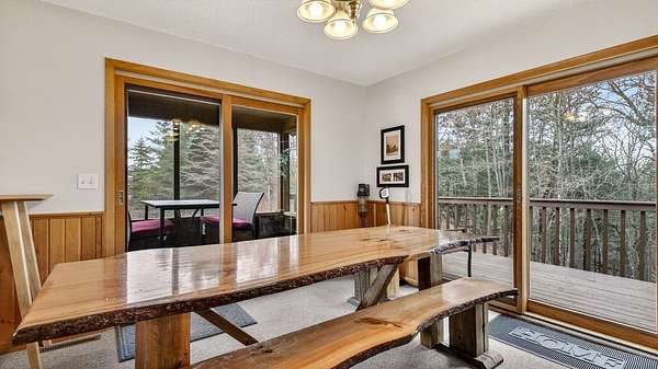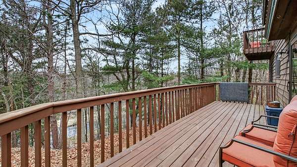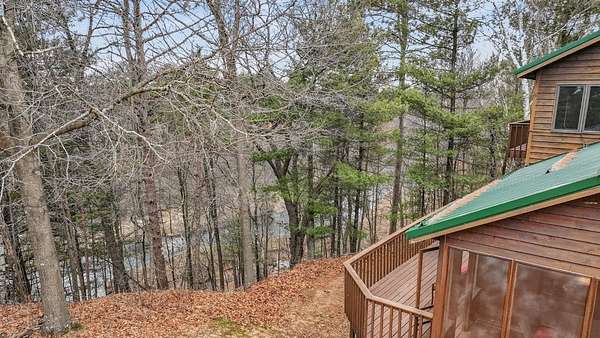 Charming cedar-sided home nestled in the pines on the Six Lake Chain overlooking Moose Ear Creek, offering a peaceful Northwoods setting with beautiful wooded and water views. The home features vaulted ceilings, pine kitchen cabinetry, a screened porch, and multiple decks perfect for enjoying the scenery. A private master loft includes a Jacuzzi tub and balcony overlooking the backyard, while both lower-level bedrooms have walkout access to the private wooded yard. Serene landscaping includes a path through the woods to the water with canoe passage from the creek to the Chetek Lakes. Located in a quiet private subdivision just 3-4 miles from town. Property does not include a dock slip, but there is opportunity to purchase a dock slip on Lake Chetek.