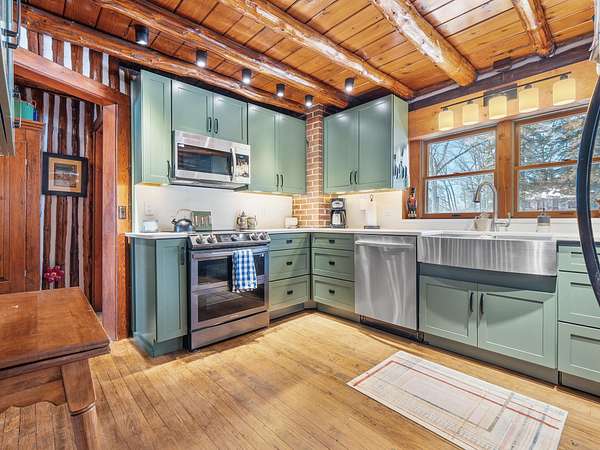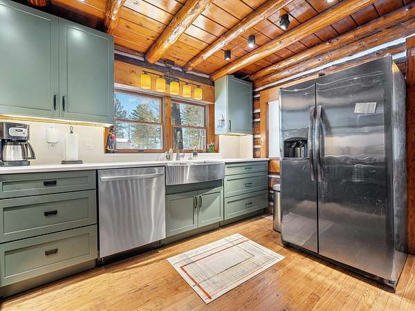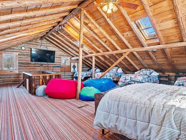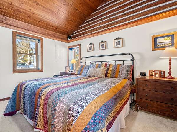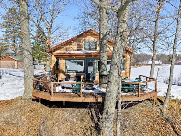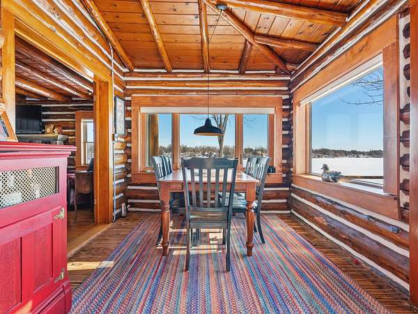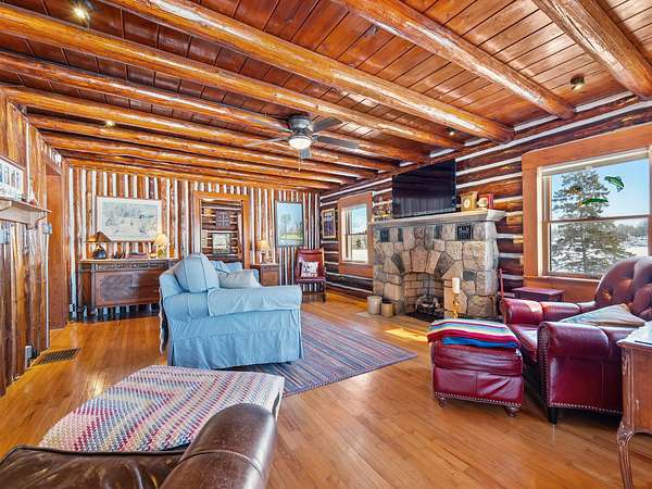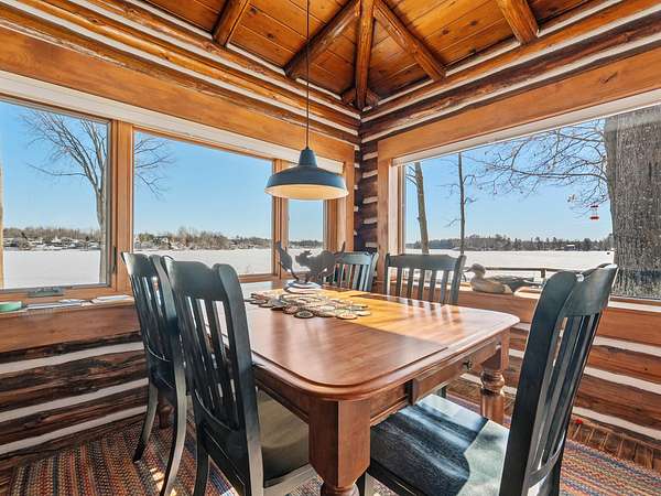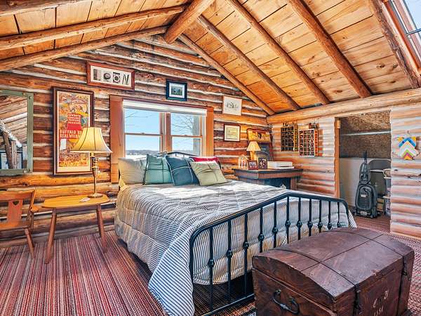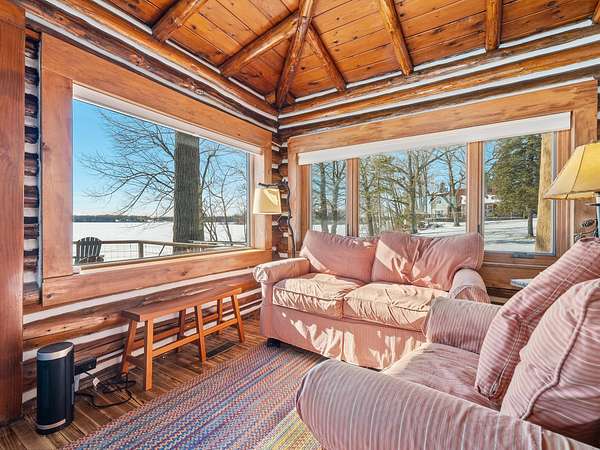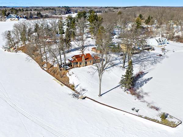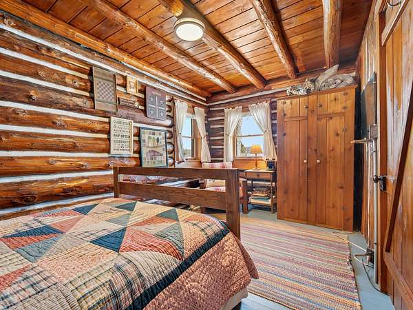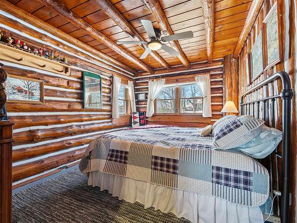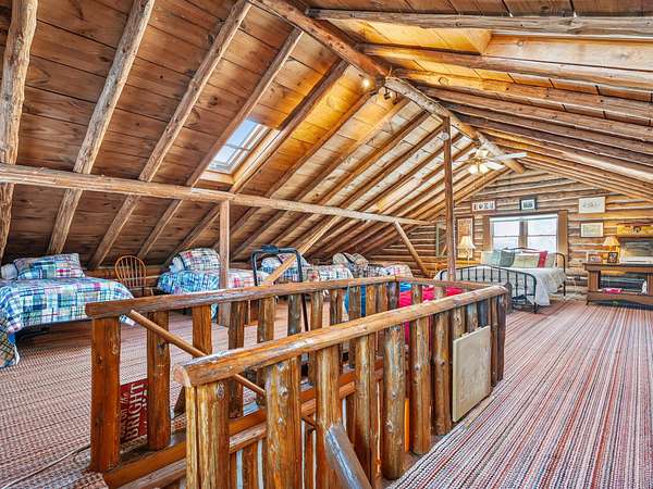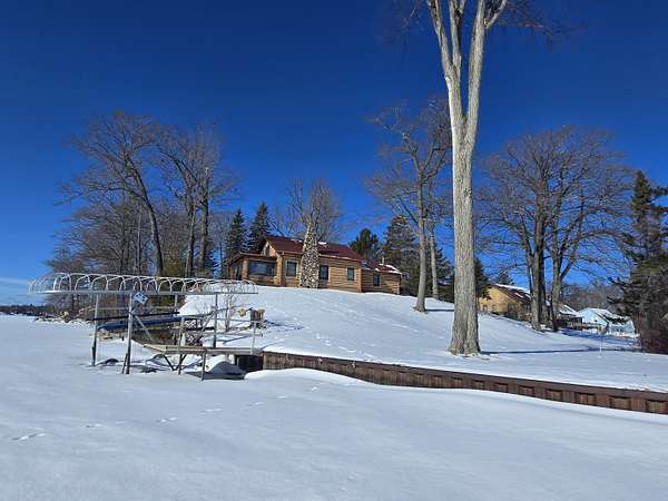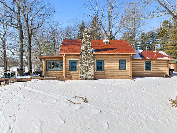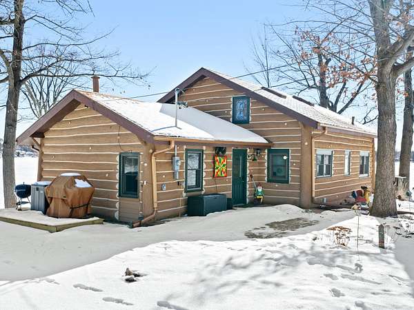 550+ feet of Sage Lake frontage. Located in the Lupton/Hale area, 3-bedroom, 2-bath perma-log home features a large loft, a partial basement, and a detached garage. This unique property offers plenty of room to roam, having spectacular water views, a stone fireplace, lakeside decking, and modern rustic charm. Highlights include a full primary suite, a steel shingled roof, a high-efficiency furnace, and an updated kitchen with quartz countertops and under-cabinet lighting. Situated at the end of a county-maintained, no-outlet road on a premier peninsula setting, the sale includes the dock(s) and boat lift/ cover. A pontoon, as well as indoor and outdoor furnishings, are available for an additional cost.* All information herein is deemed accurate but is not warranted.*