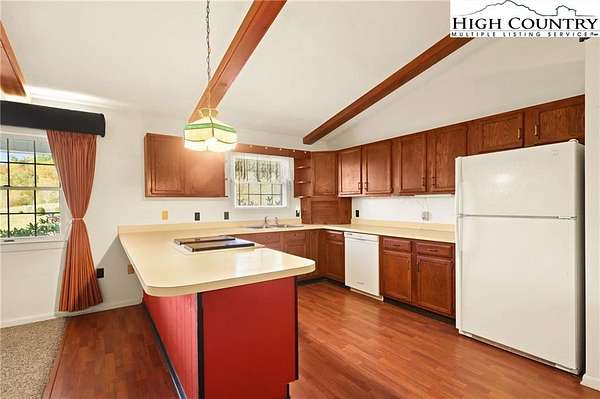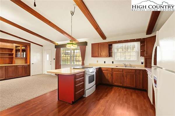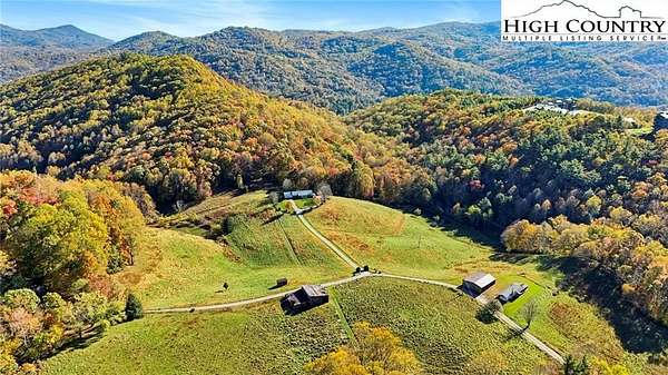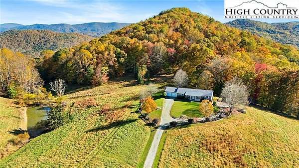 Experience the beauty of the High Country with stunning Grandfather Mountain views from this exceptional 12.5-acre estate featuring rolling meadows, two ponds, and a charming 2BR/2BA, plus one (1) additional sleeping quarter. Offering one-level living with an open-concept great room and kitchen, there is an additional 200 sqft which is a sunroom, primary suite with walk-in closet, guest bedroom and bath, laundry room, and a full unfinished basement. Highlights include a stone fireplace, attached two-car garage on the main level, additional basement garage, wood stove, new metal roof, fiber optic internet, and a covered front porch great for relaxing and taking in the scenery. The land offers usable pasture, a large barn, and multiple outbuildings--great for a family estate, horse farm, or vineyard. Perfectly situated in the Valle Crucis/Foscoe area between Boone and Banner Elk, just 15 minutes to App State, shopping, and all High Country attractions. Subdivision: Southern Watauga Rural