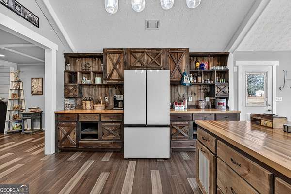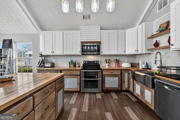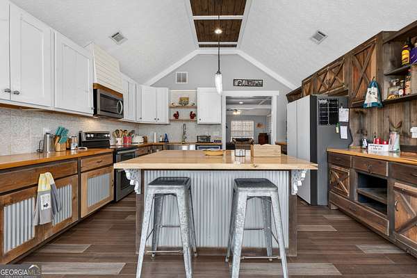 Discover the perfect blend of country tranquility and modern convenience with this adorable farmhouse. Nestled on a sprawling 22.6-acre lot, this home offers a serene escape with easy access to city life, just 2 miles from Interstate 75. This cozy home boasts four spacious bedrooms and three full bathrooms, ensuring ample space for family and guests. The master bedroom is a true sanctuary, featuring a large walk-in closet that provides generous storage space. The heart of this home is the large open kitchen, designed to be both a functional workspace and a gathering spot for family and friends. With plenty of windows, the kitchen offers breathtaking views of the pastures, filling the space with natural light. The kitchen includes a large breakfast bar and a cozy breakfast area, perfect for casual meals. Several custom cabinets and a large walk-in pantry ensure that storage will never be an issue. The living room is designed for relaxation and warmth, featuring a charming fireplace that adds a touch of rustic elegance to the space. The property is fully fenced, providing privacy and security, but the land extends beyond the back pasture fence, offering additional space for exploration and enjoyment. The property is equipped with three wells and three ponds, enhancing its potential for agricultural pursuits or simply enjoying the serene water features. For animal enthusiasts, there is a barn ready to accommodate your livestock or serve as additional storage. Whether you prefer to relax on the front porch with a morning coffee or host a barbecue on the back patio, this home offers versatile outdoor living spaces perfect for any occasion.