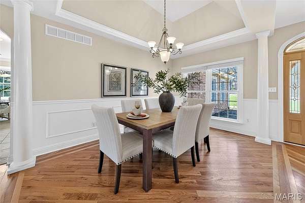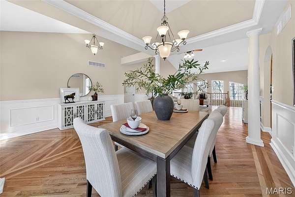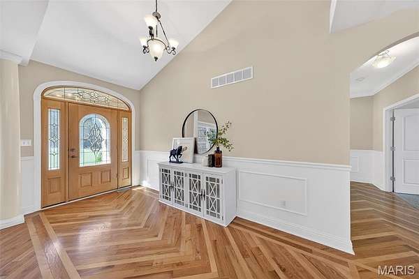 Welcome to desirable Forest Lake Estates and your opportunity to own a beautiful custom built atrium ranch on a spectacular 3.42 acre wooded lot which includes a shared lake. Situated on a quiet cul-de-sac and graced with stunning curb appeal, this home has been meticulously maintained and has some amazing features including: elegant MUST SEE hardwood floors, custom millwork & trim, vaulted-coffered & tray ceilings, open concept kitchen-breakfast & hearth area, 2 gas fireplaces, screened-in deck with a scenic tree line & lake views, oversized 31 x 27 finished & insulated 3 garage, and so much more. Enjoy over 4200+ sq ft of living space where each room offers amble size and is encompassed by excellent natural light from all of the windows. If this home wasn't enough, spoil yourself with a shared lake and enjoy fishing or playing in the water on those scorching hot Missouri days. Conveniently located minutes away from parks, wineries, dining, shopping, and in an excellent sought after Francis Howell school district. Thank you for your interest!