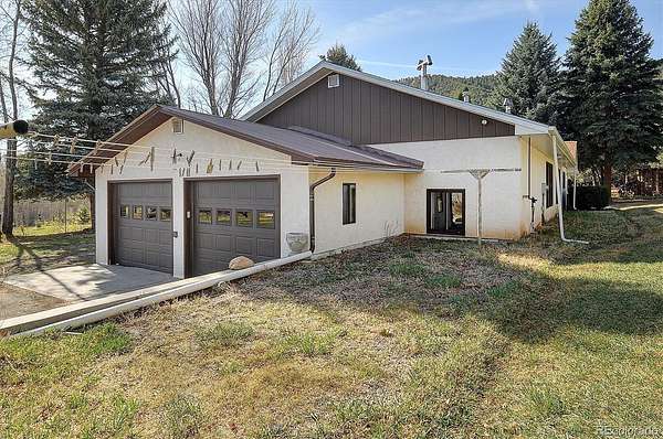 This is the special mountain home you've been waiting for! Situated on a quiet cul-de-sac on 3.86 acres, just 20 minutes east of Salida, this property is the perfect rural homestead with acreage, ditch rights, public land access, garden, orchard, pasture and more. The 2 bedroom, 2.5 bath home is spacious and charming. Its primary suite is filled with natural light and features a sitting area by the windows where you can cozy up with a book and watch the birds and deer browse in the backyard. A country kitchen awaits you with a kitchen island, electric cooktop, antique cast iron stove and a wall mounted oven, as well as a small dining nook. It opens out to a beautiful living space filled with warm character from the wood floors, high ceilings with wood beams, fireplace, and tall windows, and even a vintage wet bar! Enjoy serene views of the garden, pasture and Arkansas Hills beyond. The attached sunroom leads to a private deck surrounded by mature blue spruce, and looks out to the forested BLM land right outside your door. Store all your cars and toys in the 4-car garage, with an attached workshop heated by a potbelly stove. Outside, you will find a barn, chicken coop, woodshed and fenced animal enclosures. Two garden and pasture areas are irrigated by the Allen Ditch which runs through the property. This is a truly beautiful setting: lilacs, native pines, aspens, and blue spruce surround the lush grassy areas, and the ditch adds an enchanting creek-side ambiance in summer. The fenced garden includes an orchard with walnut and fruit trees and a small greenhouse. This location is peaceful and quiet, yet offers the benefits of close neighbors and the community of Howard with a post office, camp store, fire station and community center. The nearby Arkansas River features world class fishing and rafting, and the area is a hiker's delight with the 100-mile Rainbow Trail and several alpine lakes in the nearby Sangre de Cristo wilderness. Don't let this gem get away!