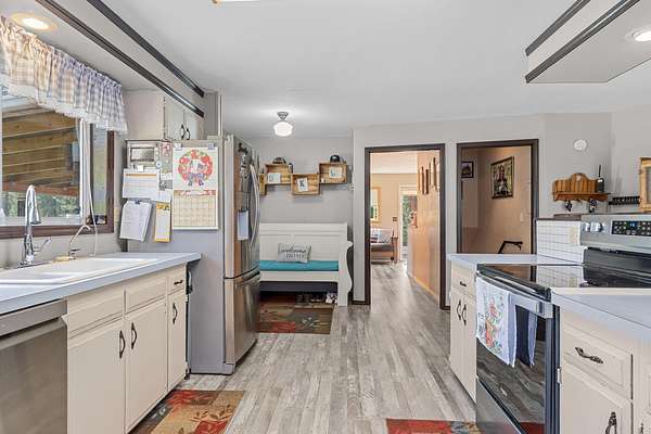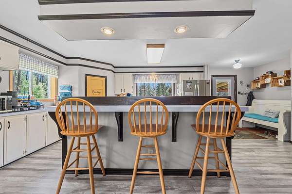 Nestled among the trees on 21 serene acres, this property offers exceptional privacy and room to roam. Escape to your own private sanctuary with this beautifully remodeled 3-bedroom, 2-bath home, completely hidden from the county road. Thoughtful great-room updates, along with stylish flooring and paint selections, stainless steel appliances with a country kitchen island creates a warm and inviting living space. Enjoy abundant wildlife, keep your own animals, or explore peaceful trails winding through the land. Unwind on the expansive 18'x20' covered deck, or tinker away in the 24'x30' shop--perfect for hobbies, storage, or projects. Though tucked away in nature, you're just 8 miles from Colville, offering the ideal balance of seclusion and convenience.