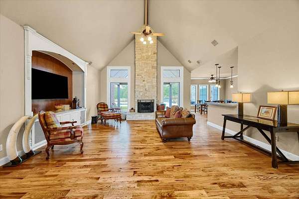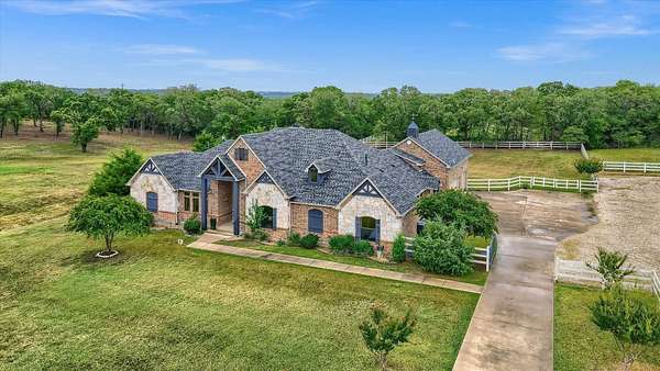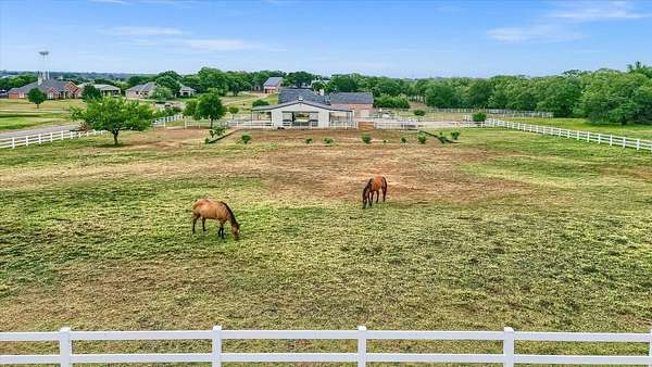 Extraordinary 4-Acre Horse Property nestled in High Trinity Ridge Estates, Aubrey. Just North of Lake Lewisville and minutes from Denton, this immaculate 4-acre horse property is a rare find. Nearly 3,800sf of beautifully designed living space, main level features a spacious floor plan with four large bedrooms, office, living with vaulted ceiling & a fireplace. The open-concept kitchen is a chef's dream, breakfast bar, island, gas cooktop, & walk-in pantry. Upstairs, you'll find a large bonus-media room with plumbing ready for an additional bathroom, providing endless possibilities.Step outside to the covered patio, where a second fireplace & pool create the perfect setting for relaxation or entertaining guests. Horse enthusiasts will appreciate the sandy loam soil, loafing shed, and a top-notch four-stall barn, along with covered trailer parking, a riding pad, and spacious pastures.Located in the desirable Aubrey ISD, this property offers easy access to Highway 380, I-35, and Denton