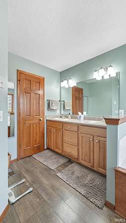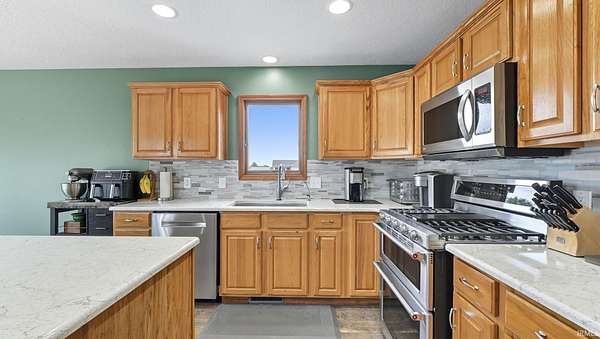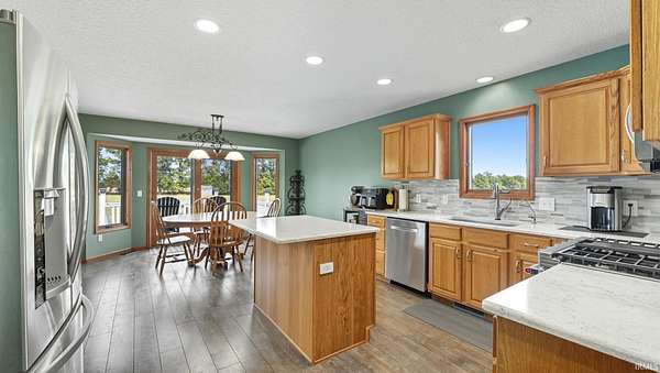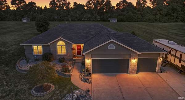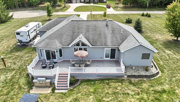 Welcome Home! Country living in the city - Lakes of Quarry Estates is a hidden gem! This pristine 3 BR 3 Full Bath home on a full finished daylight basement situated on nearly 2.5 acres is near the golf course, shopping, and minutes from I-69. Enjoy entertaining friends and family in the newly updated kitchen and huge composite deck. Pride of ownership shines with new quartz countertops, water softener in 2023, new reverse osmosis and garbage disposal in 2020, new gas range in 2021, double sump pump backup, 220 outlet in the garage, and a 16x10 shed that has solar power to light things up!