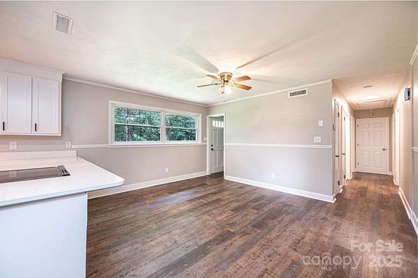 Nice brick & vinyl ranch home with many updates situated on 3.36 Acres in Mountain View! Level entry points in front, side, & rear of the home. Side brick paver patio & rear carport. Lots of nice updates in this one including a new roof, new interior LVP flooring plus refinished hardwood flooring, new stainless steel kitchen appliances & countertops, new bathroom countertop & fixtures, and new paint throughout. Front living room w/triple window & hardwood floors. Open kitchen & dining area located in the heart of the home also has a breakfast bar. Separate den w/access to side patio, plus a large mud room/laundry room leading to the rear carport. All 3 bedrooms have hardwood floors. Large hall bathroom plus a convenient half bathroom between the BRs at the end of the hall. Full unfinished basement with interior and exterior access has new insulation in the upper floor system and offers lots of storage space. Private wooded back yard. No septic permit on file. County water is with Burke County General Services. Old well is still on the property, seller is unsure of its functionality. Heat pump age is 2014 - verified by serial numbers on both inside and outside units.