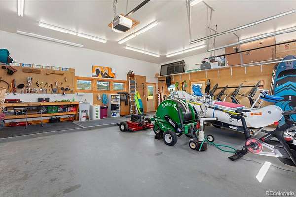 - Concrete, Dry Walled, Finished Garage, Heated Garage, Insulated Garage, Lighted, Oversized, Storage