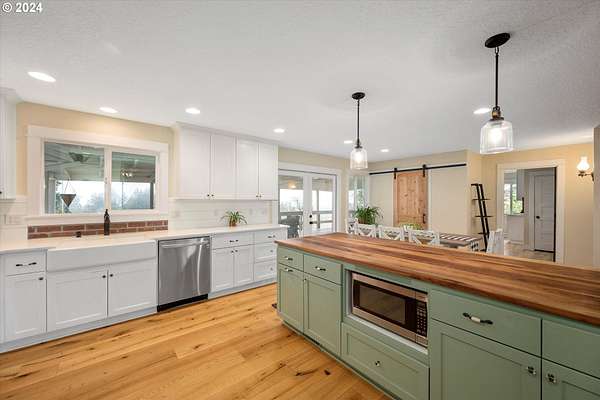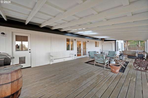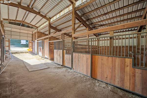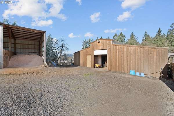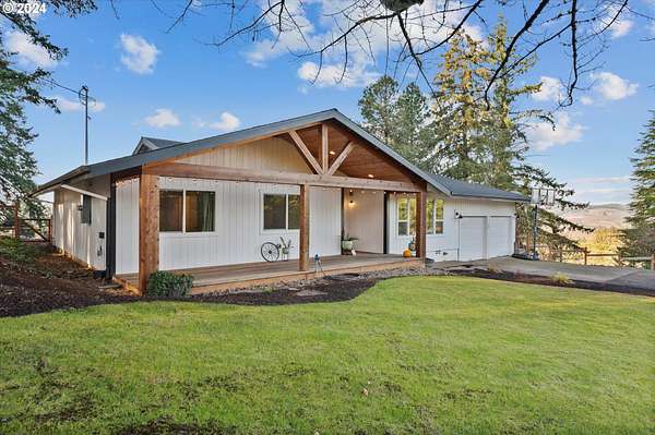 NO DRIVE BYES. Located at the end of the lane, this idyllic horse property with 10.05 picturesque acres, offers the perfect blend of rural charm and modern conveniences. The rolling pasture and grand fir trees create a gorgeous backdrop to this property. Recently undergone an EXTENSIVE remodel (please see attached document) both inside and out, the home boasts tasteful finishes throughout, combining a cozy comfort along with a touch of "farm home" all on one level. With spectacular valley views, which can be captured on the sweeping covered deck, stretch across the property and beyond the adjacent vineyard, it is an inviting retreat that feels both private and expansive. The water feature, garden space and multiple fruit trees put the final touches on this beautiful property. Equestrian enthusiasts will appreciate the well-appointed five "birthing size" stalls that are fully drained, rocked and matted. There is a hay storage area along with a training area, a tack room and a feed room. The back of the barn offers two excavated areas for round pen purposes and an outdoor arena.The other two outbuildings offer an abundance of opportunity. Whether you are looking for lots of storage, a place to park your RV and farm equipment or a workshop space - you've got it and more!This is a rare, turn-key, hard-to-find horse property located close enough to town for convenience, yet far enough out to enjoy a peaceful, tranquil living experience. The deferred tax status offers additional financial benefits as well. If you are seeking a serene retreat that blends country elegance with practicality, this property is the perfect place to call home.