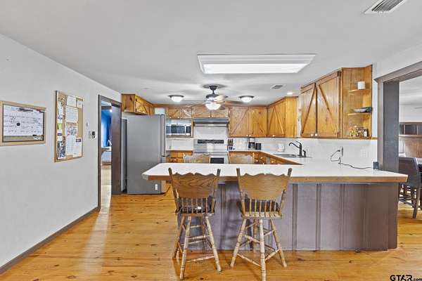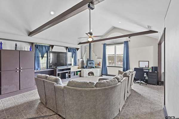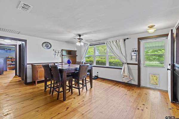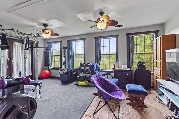 Discover the perfect blend of East Texas charm and wide-open space with this beautiful ranch-style property situated on approximately 32.4 acres in Big Sandy. This single-family home offers a peaceful setting surrounded by a mix of pasture and natural landscape, ideal for those seeking privacy, recreation, or agricultural use. Inside, you’ll find a thoughtfully designed layout featuring a split primary bedroom, multiple living areas including a den and family room, and vaulted ceilings that create an open, airy feel. The home is equipped with energy-efficient features such as foam insulation, double-pane windows, and a programmable thermostat, helping maintain comfort year-round. A combination of modern touches like smart home features and classic elements make this home both functional and inviting. Whether you're enjoying quiet evenings on the covered porch or taking in the scenic views, this property delivers a true country living experience. Outside, the land offers endless possibilities with fencing already in place and ample room for livestock, recreation, or future improvements. A security gate provides added privacy, while outdoor features like an open patio and covered deck create ideal spaces for entertaining or relaxing. The property is serviced by an aerobic septic system and offers the space and flexibility to expand, build additional structures, or simply enjoy the natural beauty of East Texas. With over 30 acres, this property provides the perfect balance of usability and privacy, all while being conveniently located just minutes from Big Sandy. This is a rare opportunity to own a versatile acreage property with space, comfort, and potential all in one.