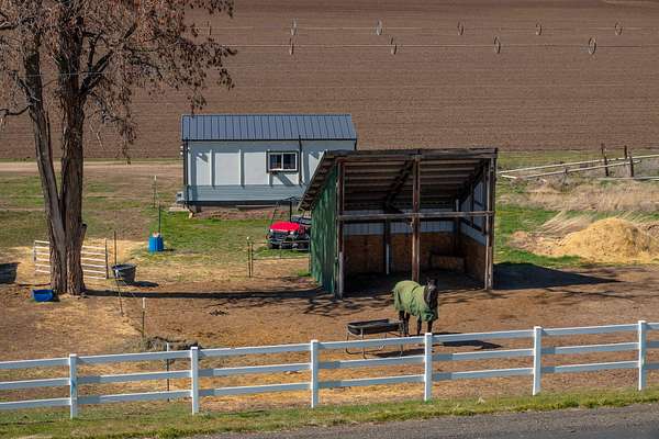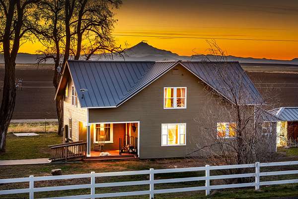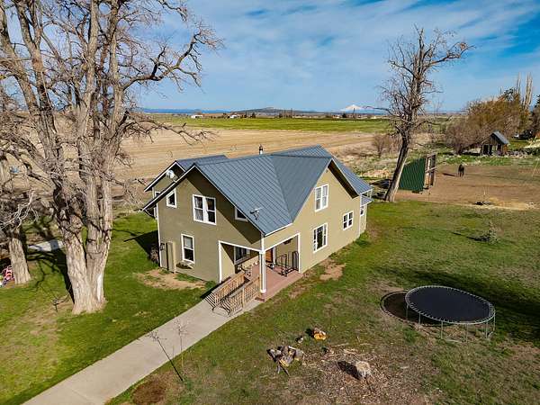 OWNER TERMS AVAILABLE. Cascade Mountain views frame this exceptional Culver farm spanning 84.07 acres with 77 acres of valuable water rights. This productive Central Oregon property blends irrigated farmland, rental income, and equestrian amenities. The charming, updated 1913 country home offers 4 bedrooms, 3 baths, and 2,591 sq ft with an open floor plan, soapstone counters, gas cooktop, large island, pantry, wet bar, and dining area open to the living room with wood stove and gas insert. The primary suite features a tiled shower and private deck. Upper level includes a loft, two bedrooms, and a second primary suite with clawfoot tub. Walk-in cellar for storage. Adorable tiny house with excellent vacation rental history. Barn with tack room, hay barn, horse pastures, loafing shed, and swine pens. Opal Springs water. Irrigated fields with wheel and hand lines, currently leased. Fenced yard with auto sprinklers. Prime second home site with power nearby.