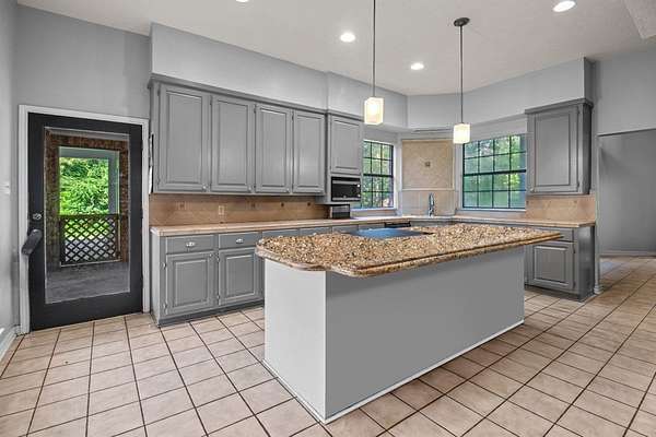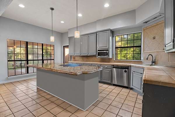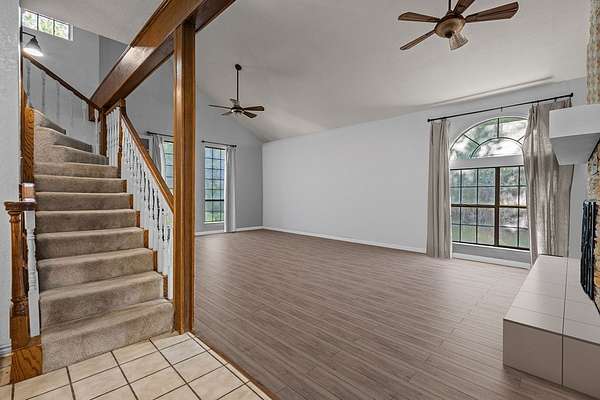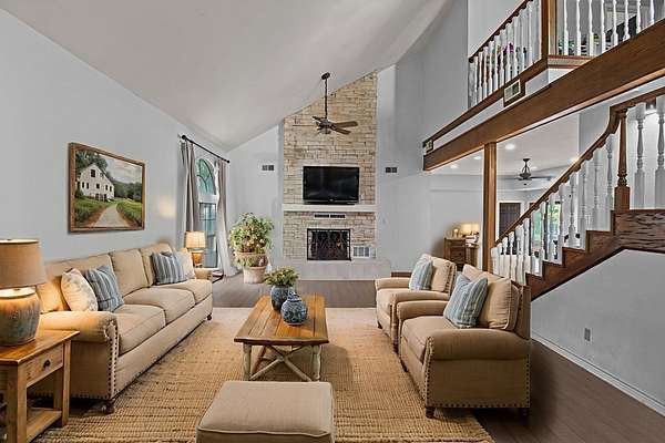 - Bookcases, Breakfast Bar, Ceiling Fan(s), Kitchen Island, Open Floorplan, Primary-Lower Level, Vaulted Ceiling(s)