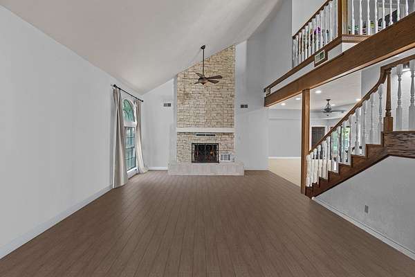 Est $2,754/moDiscover a custom traditional home set on 8.4 rolling acres, surrounded by lush lawns and towering trees. This designer-crafted home impresses with soaring ceilings, a dramatic floor-to-ceiling stone fireplace, and abundant natural light from walls of windows. Wood and tile floors lead to a chef's kitchen featuring a granite island, breakfast bar, and custom cabinetry. Enjoy a spacious double living area open to the kitchen, four bedrooms with walk-in closets, three baths, and an airy loft offering flexible living space. Outside, a large deck overlooks picturesque landscaping--perfect for entertaining. A barn, storage shed, attached two-car carport, and circle drive complete this private, unrestricted country retreat.