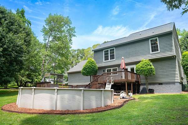 Welcome to this beautifully maintained 3-bedroom, 2-bath split-level home located in the highly sought-after Grassy Pond area of Gaffney, SC. Property offers privacy, space, and convenience just minutes from local amenities. Enjoy outdoor living among mature trees, manicured landscaping, and a partially shaded with a private above-ground pool with a spacious double-deck perfect for entertaining. The exterior features rustic charm with rough-cut cedar siding and a green lawn. Less than a mile from Cherokee National County Club. Inside, you'll find tile flooring in the kitchen, upgraded laminate wood flooring in living areas, and carpeting in the bedrooms. Tall tilt-in windows, Floor to-ceiling stone natural gas fireplace from the lower to upper family area. The kitchen has solid wood cabinets and all stainless steel appliances. Includes washer and dryer. The master suite has double sinks and a stand-up shower, while the upstairs bath has been newly remodeled with a jetted tub/shower combo & new vanity. Additional features include: 22x24 two-car garage with attic storage Encapsulated crawl space with insulation, dehumidifier, lighting. Walkable attic with shelves 12x20 storage building with workbench and shelving