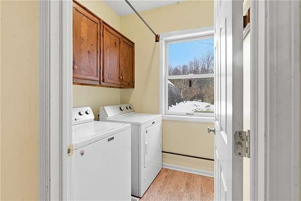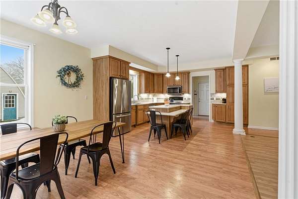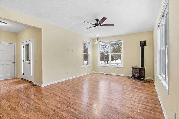 Welcome to this beautifully maintained 2006 Barone Built ranch, designed for comfort, efficiency, and effortless entertaining. This energy-efficient home features updated mechanics, a whole-house generator, and solar paneling-keeping utility costs impressively low year-round. Offering 3 spacious bedrooms and 2 full baths, plus a possible 4th bedroom or private home office, this home provides flexibility to fit your lifestyle. The inviting open floor plan flows seamlessly, making it the perfect space for gatherings and everyday living alike. Enjoy a private master en suite, a sprawling basement with endless possibilities, and thoughtful upgrades throughout. Situated on over 2 scenic acres, the property also features a 2-story, 40x60 barn and a fenced-in yard area-ideal for hobbies, storage, pets, or outdoor entertaining. A rare combination of efficiency, space, and style-this is the perfect place to call home. Delayed negotiations due March 2nd at 4pm.