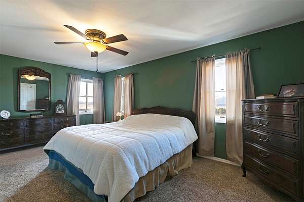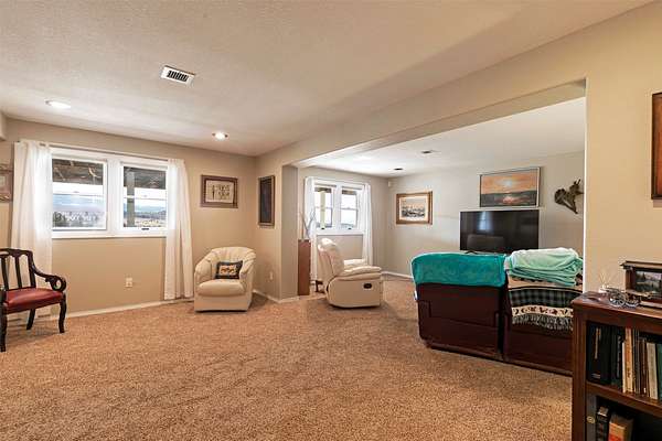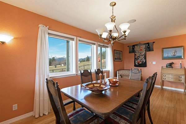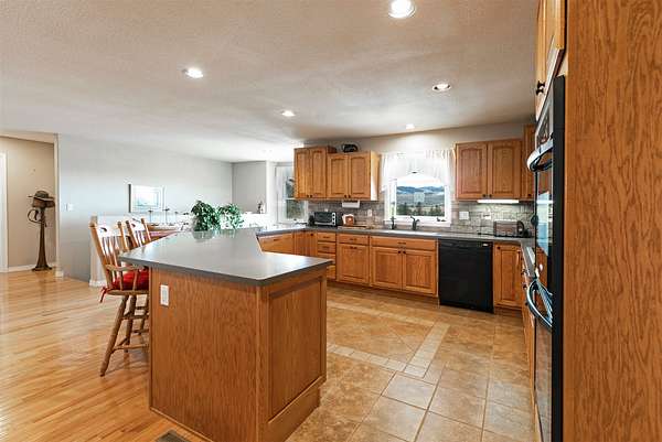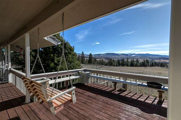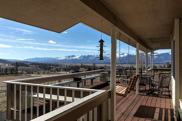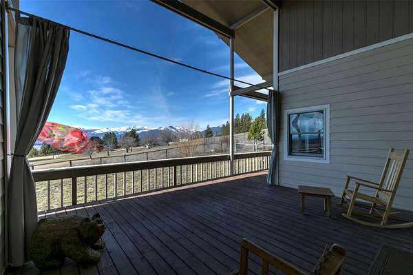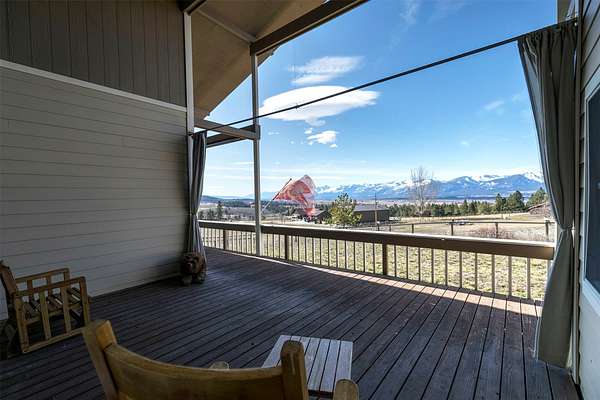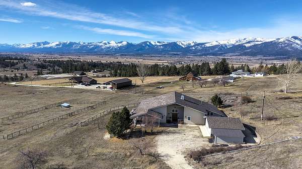Overlooking the Bitterroot Valley, 763 South Sunset Bench Road is a 3-bedroom home with bonus rooms and 3.5 bathrooms, offering space, comfort, and functionality. The main level features a double-door entry opening to the living room, highlighted by a fireplace with a stone surround and direct access to the expansive wraparound deck. French doors extend the living space outdoors, creating an ideal setting for dining and entertaining while taking in the valley views. Just off the deck, a distinctive pool room offers year-round recreational potential and awaits your personal touch. The kitchen features a large peninsula, double ovens, a double refrigerator, a dishwasher, and an electric glass cooktop, and conveniently connects to the mudroom and laundry area at the front of the home. The spacious primary suite includes two closets, a three-quarter bath, and dual vanities. A guest bedroom with a walk-in closet is served by a full bath across the hallway, and an additional office space adjacent to the kitchen provides flexibility for remote work or hobbies. The daylight walk-out lower level offers two additional family areas, a dedicated work or hobby space with a walk-in closet, and a second three-quarter bathroom-ideal for media space, projects, or multi-generational living. Outside, a patio connects the home to a detached two-car garage with lean-tos for covered storage, while a carport adds additional parking near the house. The property also features perimeter fencing, fruit trees, a gated driveway, and irrigation from the ditch. With open space, panoramic views, and paved county road access, this property offers the perfect blend of rural tranquility and convenient access to Stevensville and the Bitterroot Valley.