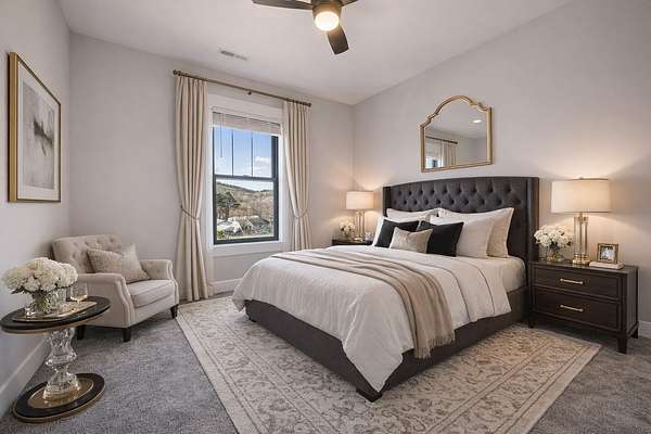 Discover your own private retreat with rolling, scenic views and a beautifully crafted 4-bedroom, 3.5-bath home designed for both comfort and entertaining. Step inside to real hardwood floors and an impressive open-concept gourmet kitchen featuring double ovens, tile backsplash, cabinet trash bins, a large island with outlets, a spacious pantry with built-in outlets, and custom cabinetry throughout. All of the generously sized bedrooms are on the main floor.