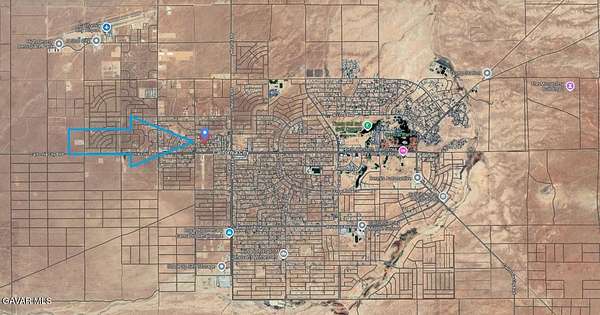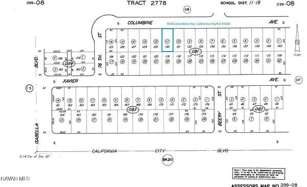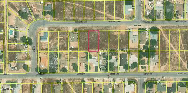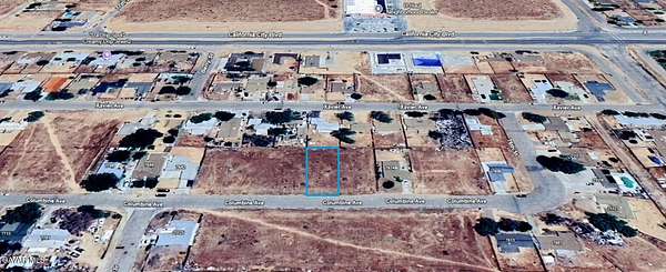 Go to the address of 7624 Columbine Ave, California City, CA 93505. The lot is two lots to the east.