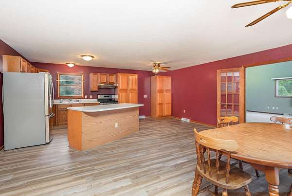 Est $1,510/moCountry living this spacious 4 bedroom, 2 bathroom home offering over 2,200 sq ft of one-level living on 3.67 acres just minutes from Norway Lake. This home features a functional layout with generous living spaces, new vinyl plank flooring, new interior doors, new carpet in 2 of the bedrooms and main-floor laundry, Generac backup generator for peace of mind. Outside, you'll find two pole barns (23x28 and 30x31), plus a finished 31x20 space with bathroom, heat, and electric--ideal for a workshop, office, or guest space. A 10x22 shed provides additional storage. Enjoy peaceful country living with plenty of space for hobbies, recreation, or small business use, all with convenient access to Norway lake amenities.